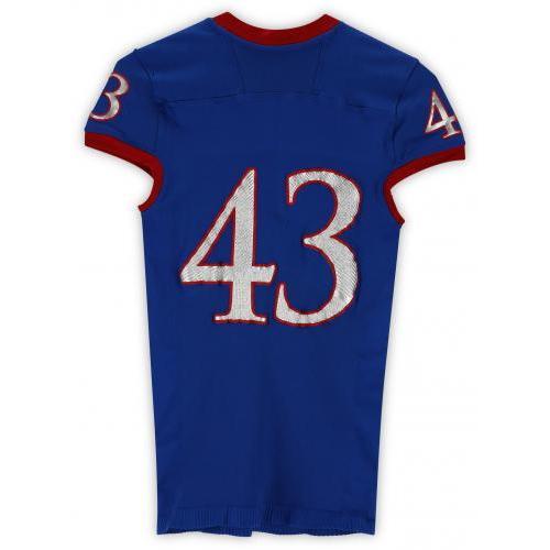 Kansas Jayhawks Team-Issued #43 Blue Jersey from the 2018-21 NCAA Football Seasons - Size L - Fanatics Authentic Certified