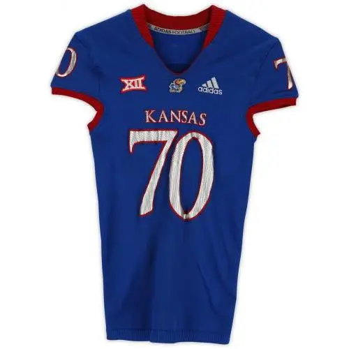 Kansas Jayhawks Team-Issued #70 Blue Jersey from the 2018-21 NCAA Football Seasons - Size L If a product is unsigned or non game-used, a hologram will not be included memorabilia. Kansas Jayhawks memorabilia.