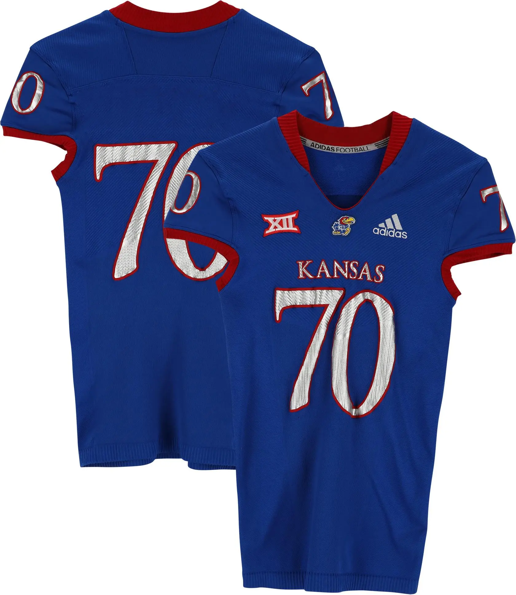 Kansas Jayhawks Team-Issued #70 Blue Jersey from the 2018-21 NCAA Football Seasons - Size L - Fanatics Authentic Certified