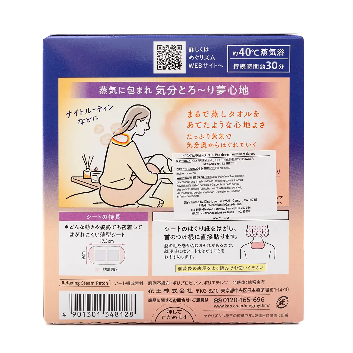 5. Kao MegRhythm Gentle Steam Shoulder Mask, Lavender 12ct 1 box