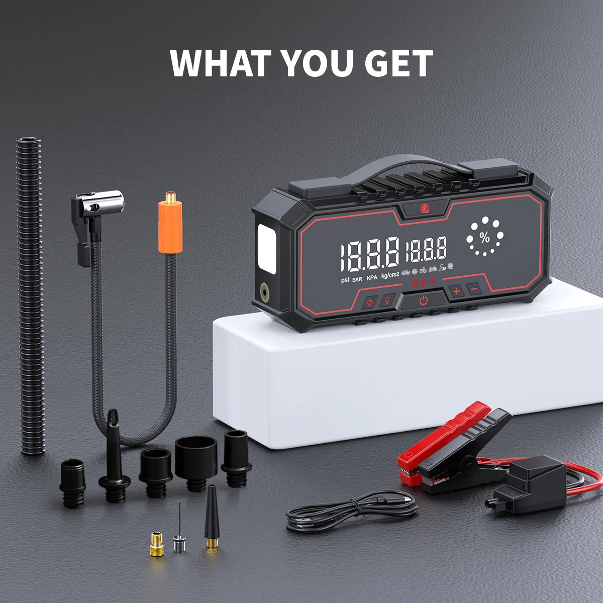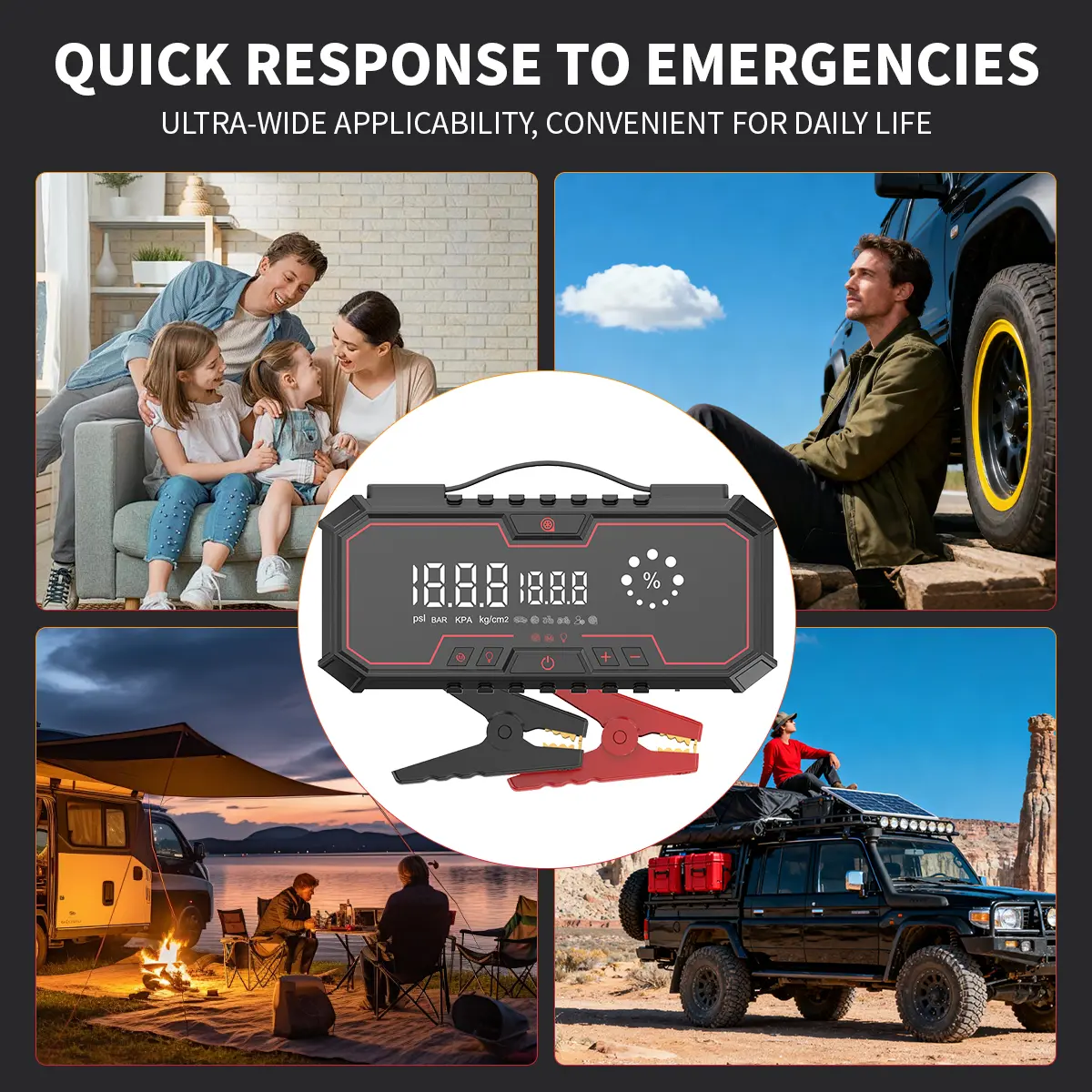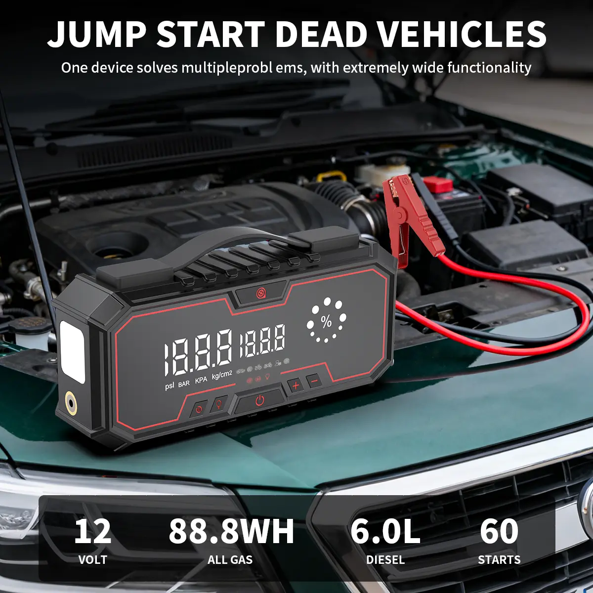 ·Multi-Function Vehicle Battery Jump Pack: A comprehensive solution for car battery issues.