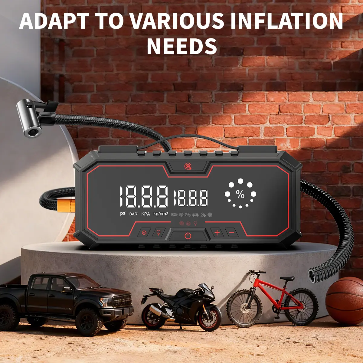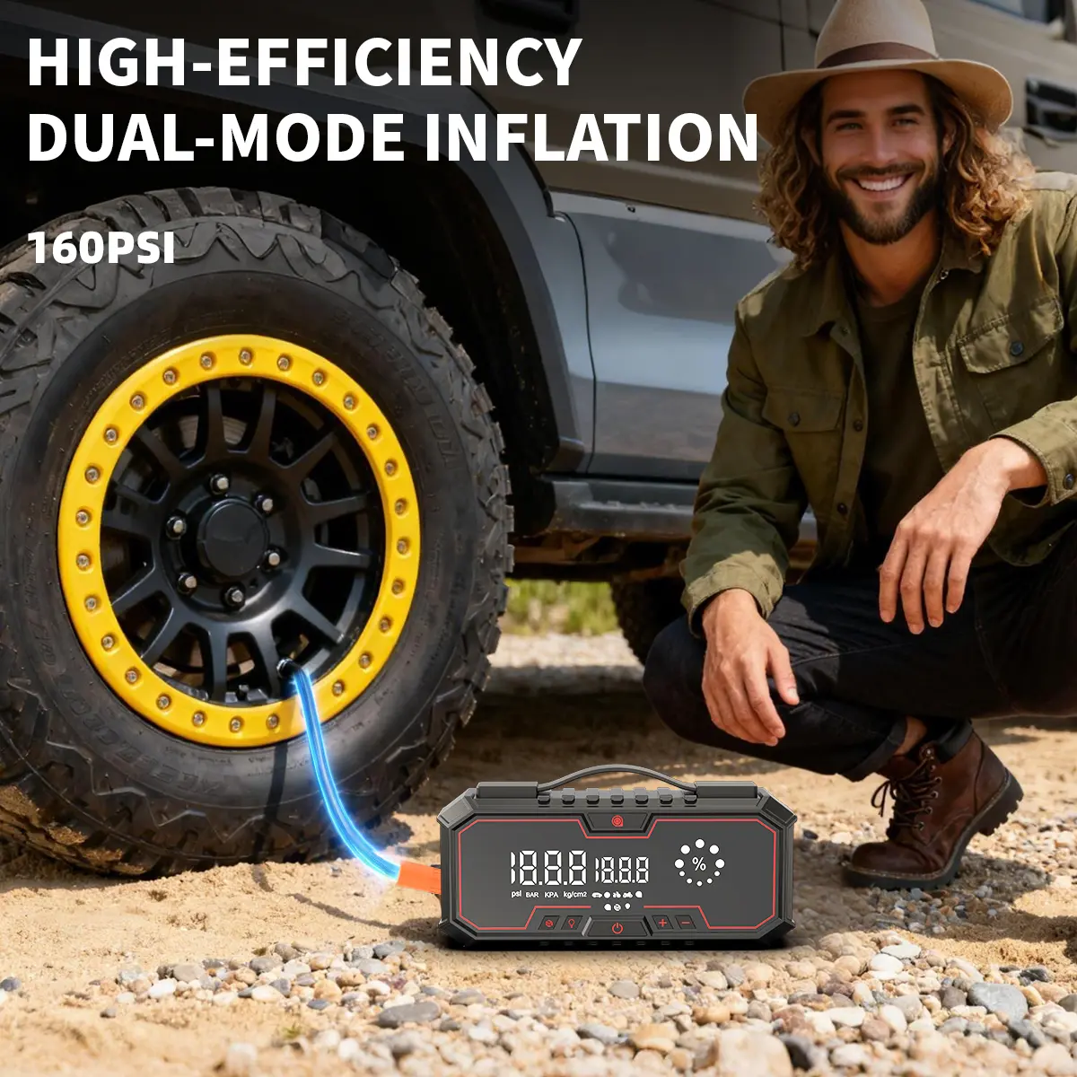 ·160PSI Tire Inflator: Quickly inflate tires with ease.