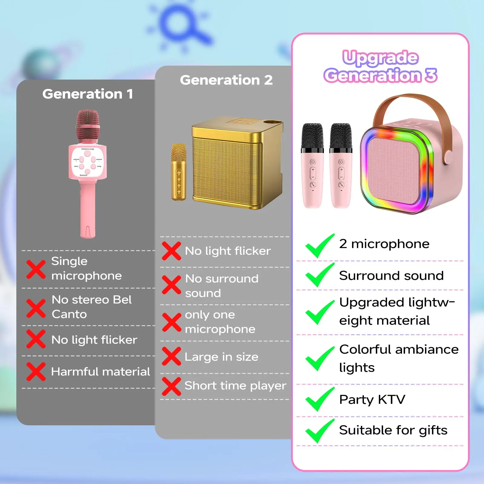 Super fun karaoke sound system! My grandkids love having fun singing and dancing with it!
