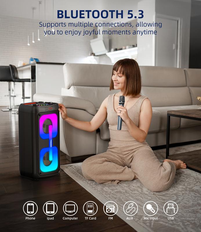 ·Ideal Gift: The portable music speaker comes with two wireless microphones, perfect for family fun, making it the best gift for children, adults, family, and friends for birthdays, Christmas, Thanksgiving, New Year, Easter, Valentine's Day, and Halloween.