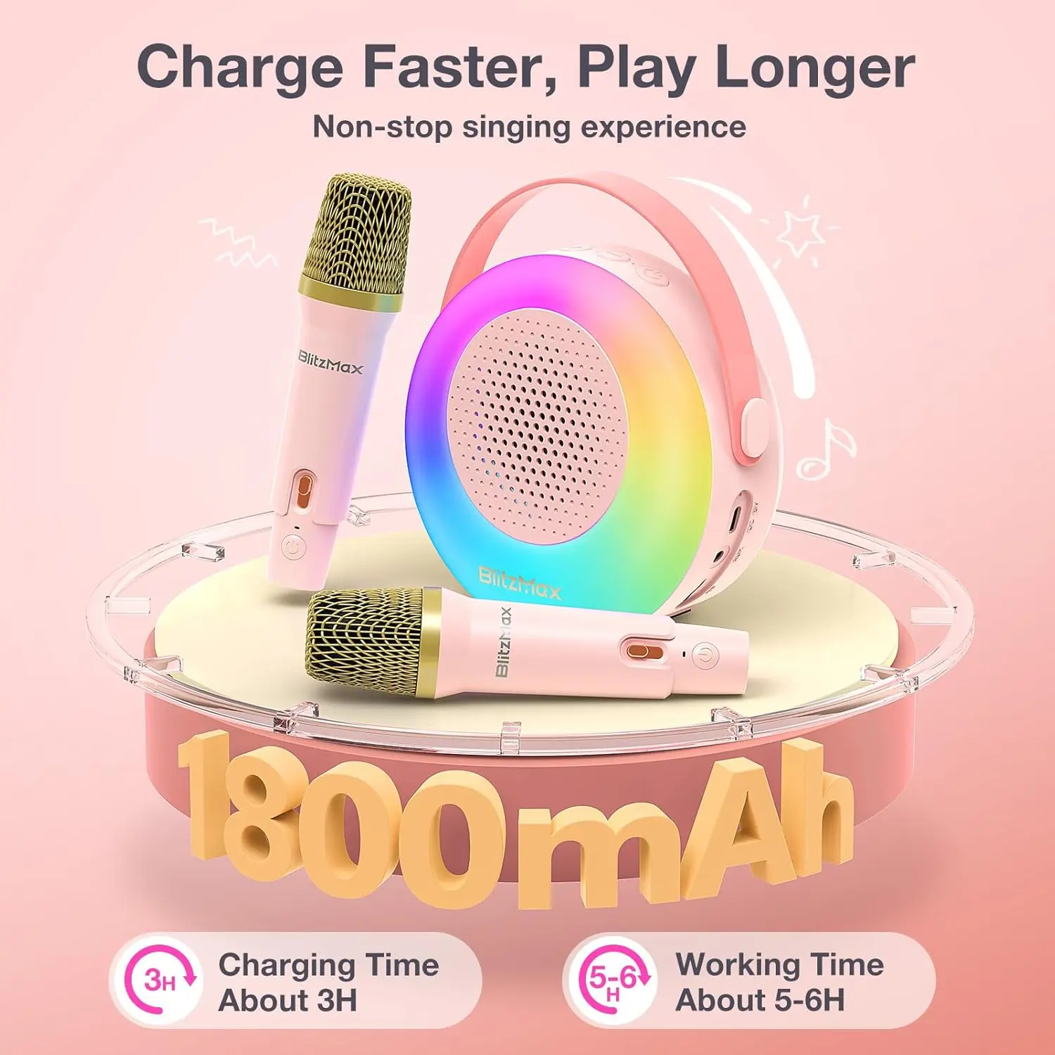 ·2 Wireless Microphones: Enjoy singing together without wires.