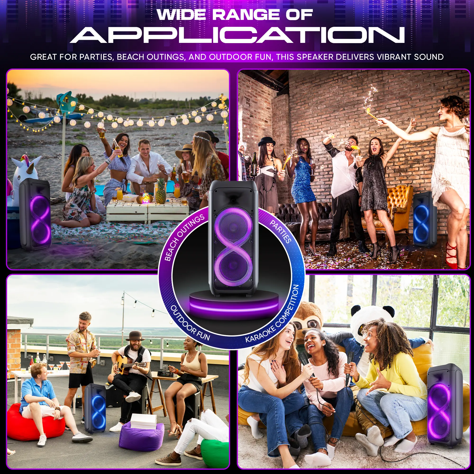 ·Dynamic LED Lights: Transform any space into a lively party atmosphere with dynamic LED lights. The lights pulsate and change colors in sync with the rhythm, adding a visually stunning element to your music and karaoke performances.