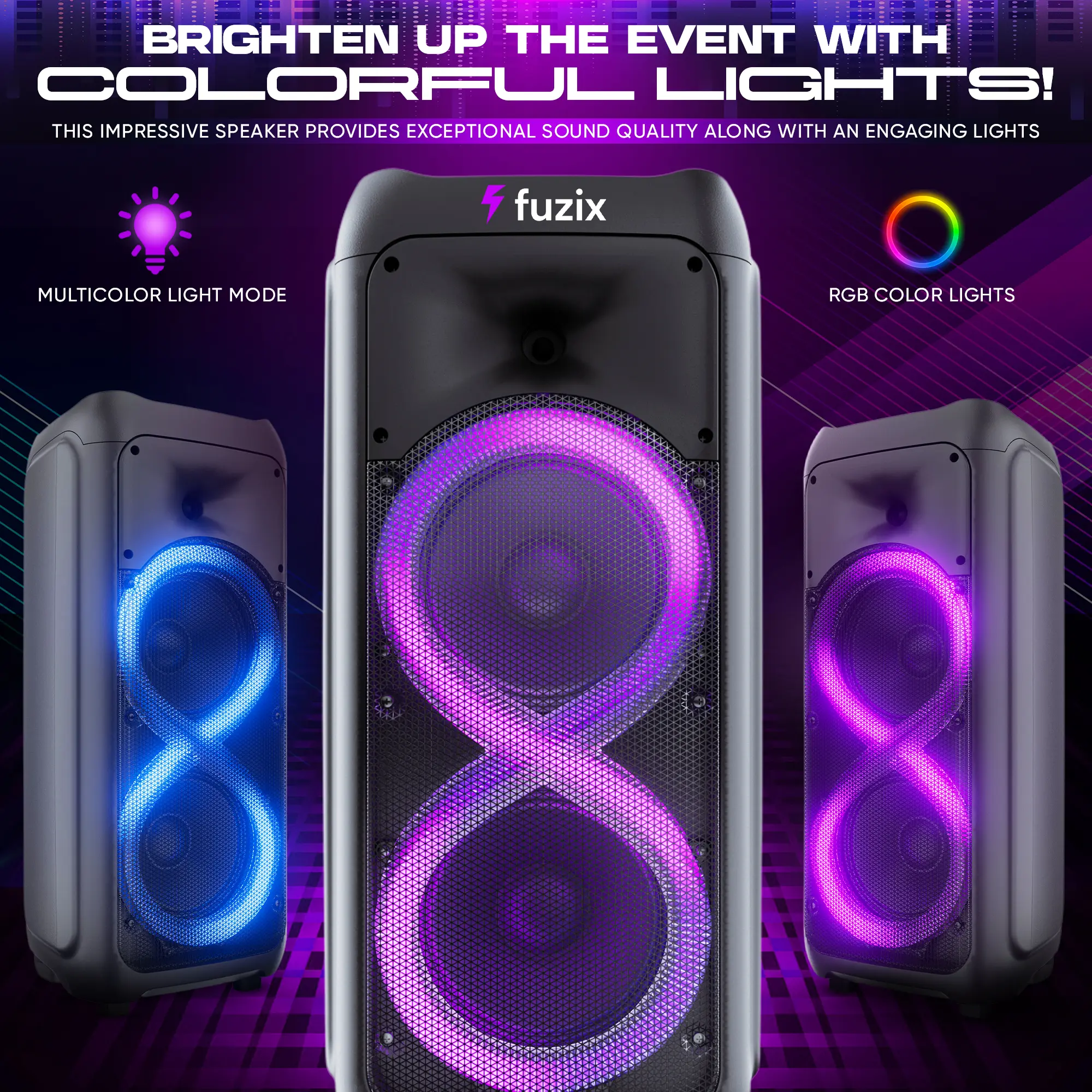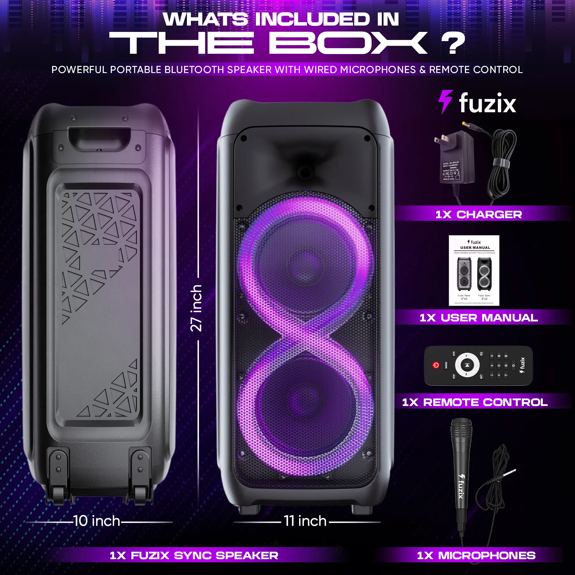 Introducing the Fuzix Sync Portable Rechargeable Karaoke Bluetooth Audio Speaker – a versatile and feature-packed entertainment powerhouse designed to elevate your music and karaoke experience. With a host of connectivity options, dynamic LED lights, and the convenience of wireless operation, this speaker ensures that every gathering becomes a memorable event.