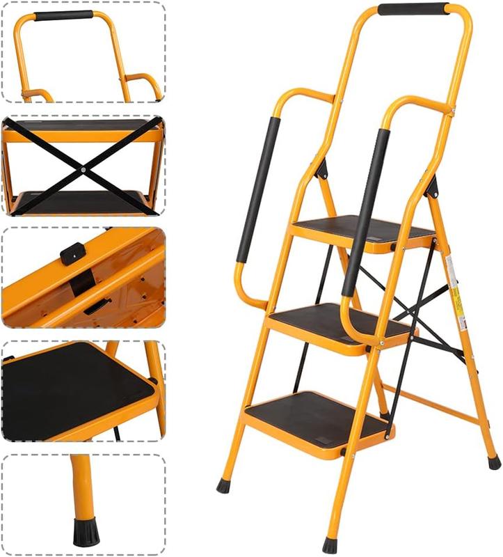 Elevate your home or office with the Karlhome 3-Step Staircase. This folding step stool features a large footboard area, ensuring stability. Non-slip side handrails provide safety. Perfect for home or office use, it offers a practical solution for height challenges. 🏠