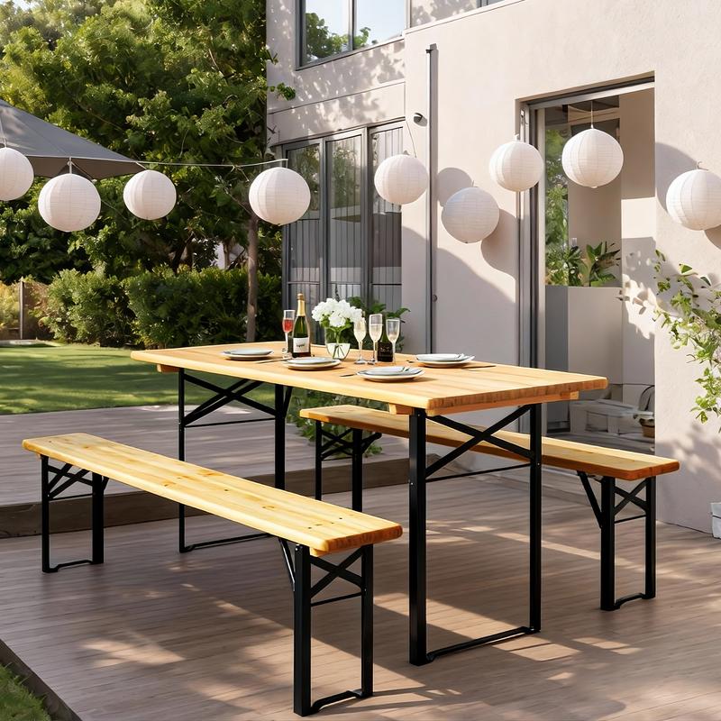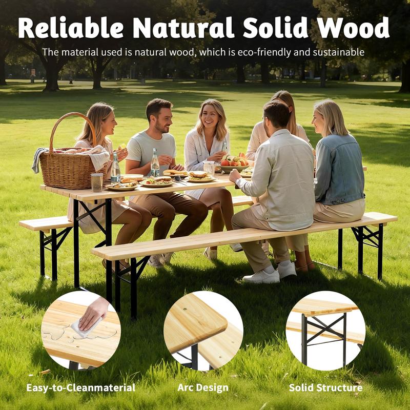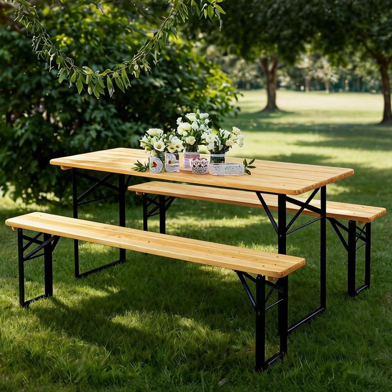 ● MORE STABLE DESIGN: There are three bench legs of each bench which could greatly increase the stability of the bench, more safe, more comfortable; The legs of table and bench could be foldable, easy and convenient to store