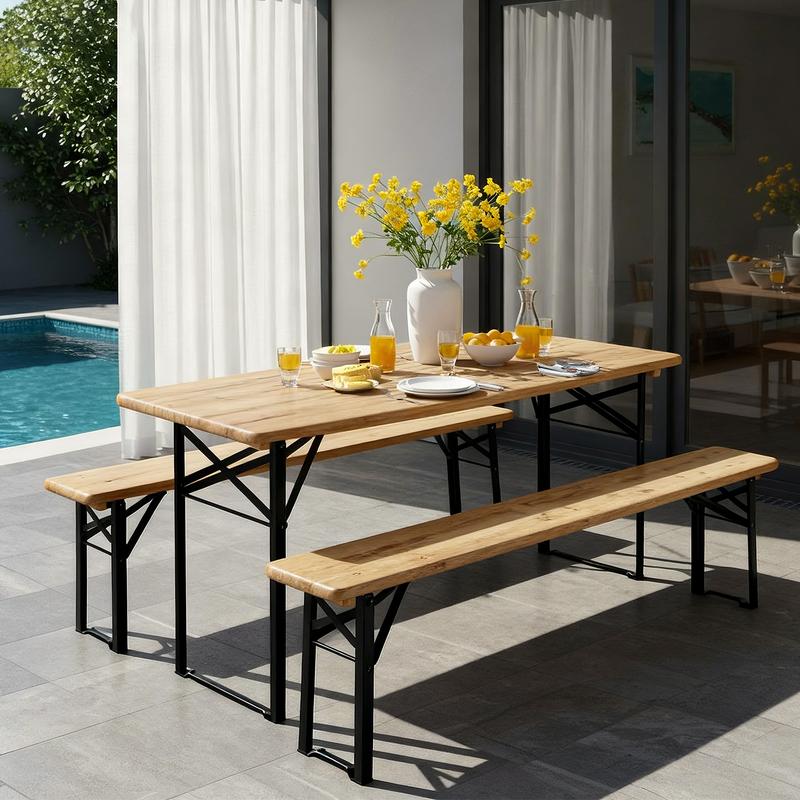 ● MULTI-FUNCTIONAL : Perfect choice for either indoor or outdoor, can be used as dining table set for kitchen, group study table set for school, beer table set for gathering; or bring it with you on a camping trip, host a party on your backyard, and more than you could imagine