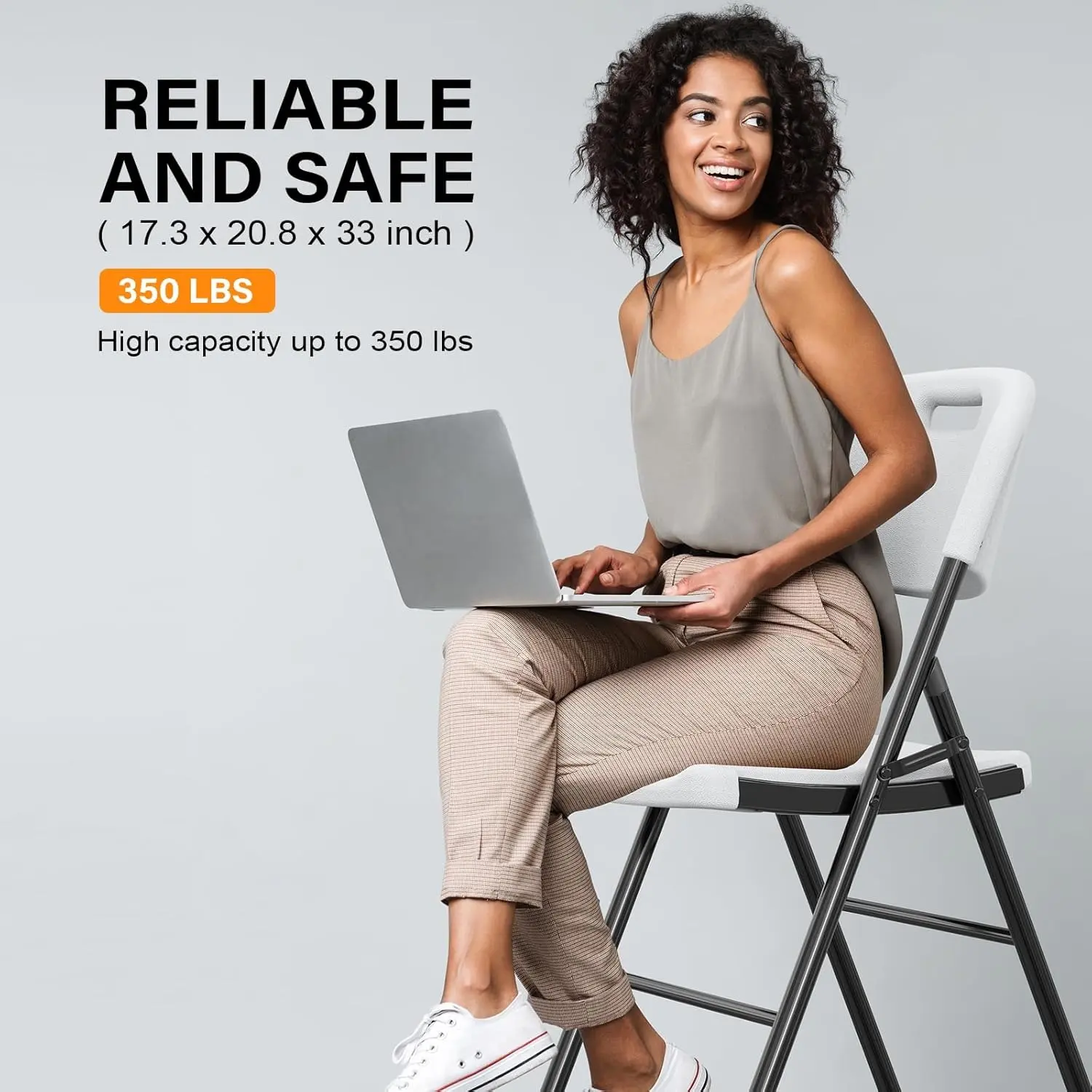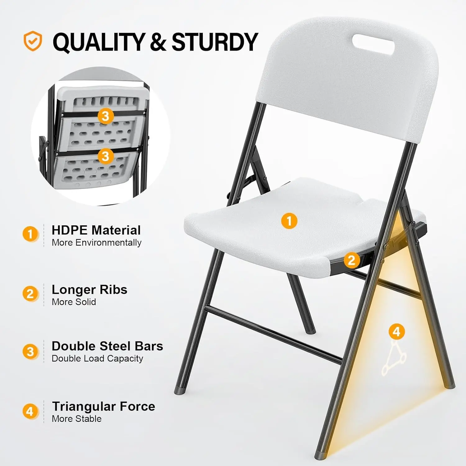 ยทThe seat and back are made of thick HDPE, ensuring solidity. The strong frame is black-coated, offering stability. With a weight capacity of 350lbs, these chairs are perfect for heavy use. ๐ ๏ธ