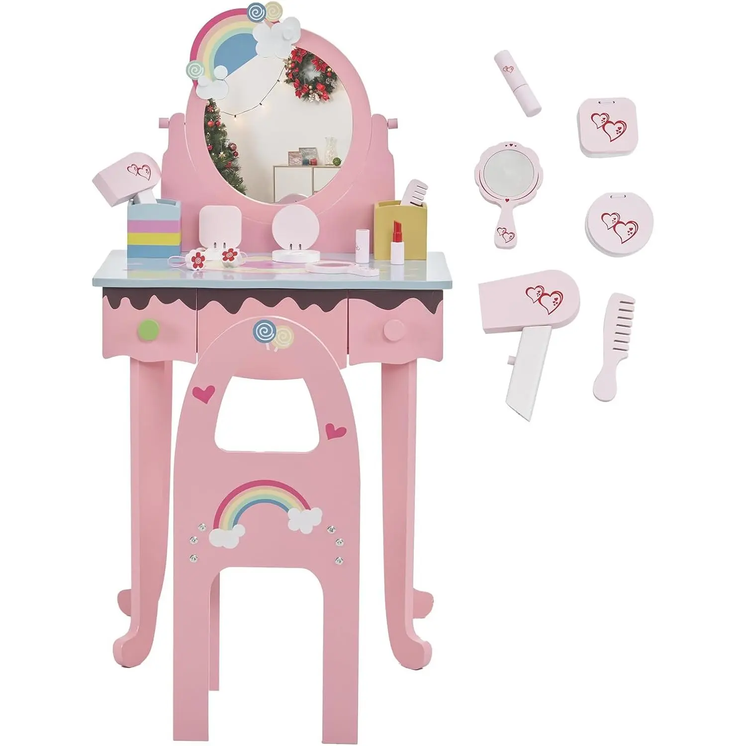 Karlhome Kids Vanity Table and Chair Set, Princess Toddler Dressing Table with 7pcs Multiple Make up Accessories 3 Drawers & Tabletop Storage, Wooden Pretend Play Vanity Set for Little GirlsKarlhome Kids Vanity Table and Chair Set, Princess Toddler Dressing Table with 7pcs Multiple Make up Accessories 3 Drawers & Tabletop Storage, Wooden Pretend Play Vanity Set for Little GirlsKarlhome Kids Vanity Table and Chair Set, Princess Toddler Dressing Table with 7pcs Multiple Make up Accessories 3 Drawers & Tabletop Storage, Wooden Pretend Play Vanity Set for Little GirlsKarlhome Kids Vanity Table and Chair Set, Princess Toddler Dressing Table with 7pcs Multiple Make up Accessories 3 Drawers & Tabletop Storage, Wooden Pretend Play Vanity Set for Little GirlsKarlhome Kids Vanity Table and Chair Set, Princess Toddler Dressing Table with 7pcs Multiple Make up Accessories 3 Drawers & Tabletop Storage, Wooden Pretend Play Vanity Set for Little GirlsKarlhome Kids Vanity Table and Chair Set, Princess Toddler Dressing Table with 7pcs Multiple Make up Accessories 3 Drawers & Tabletop Storage, Wooden Pretend Play Vanity Set for Little GirlsKarlhome Kids Vanity Table and Chair Set, Princess Toddler Dressing Table with 7pcs Multiple Make up Accessories 3 Drawers & Tabletop Storage, Wooden Pretend Play Vanity Set for Little Girls