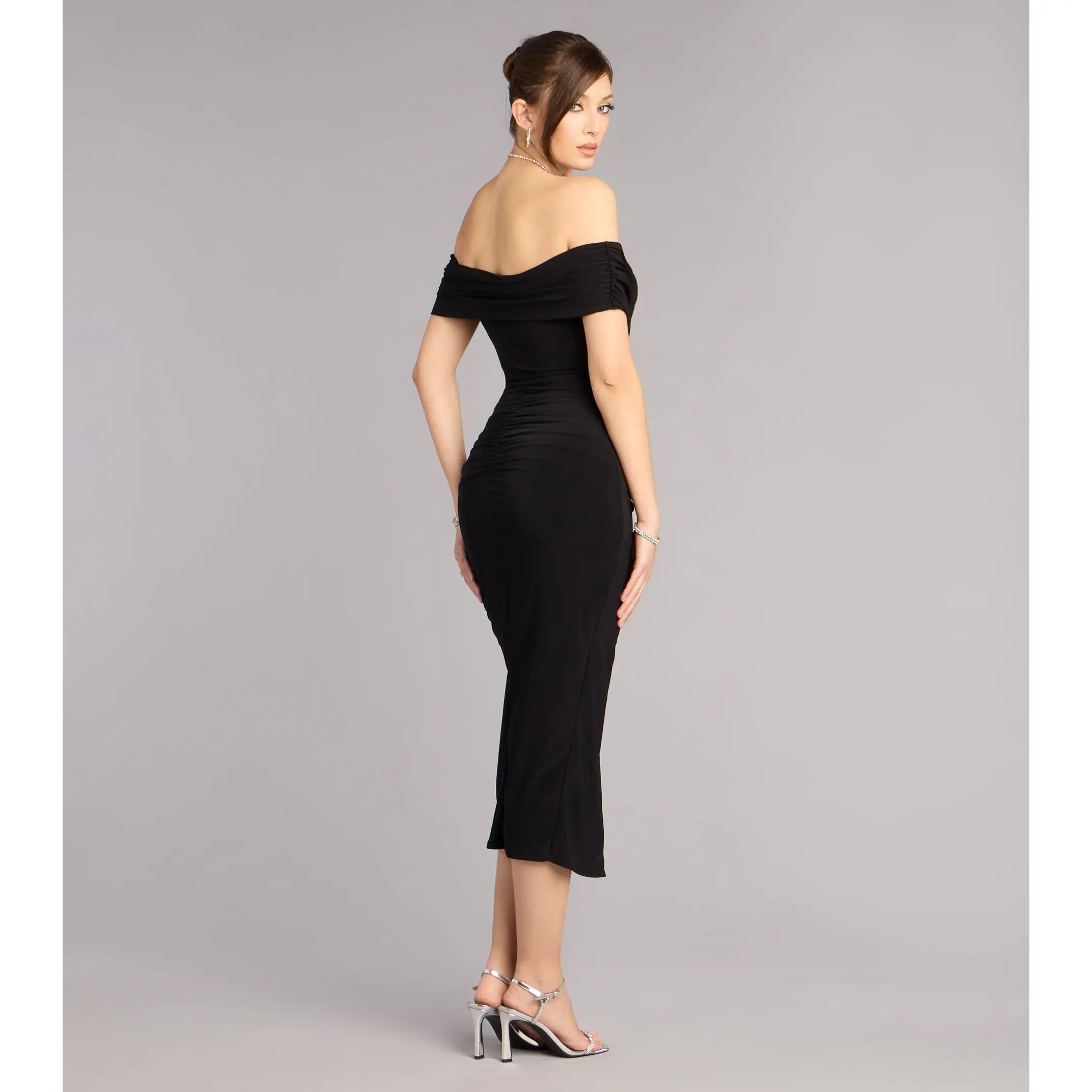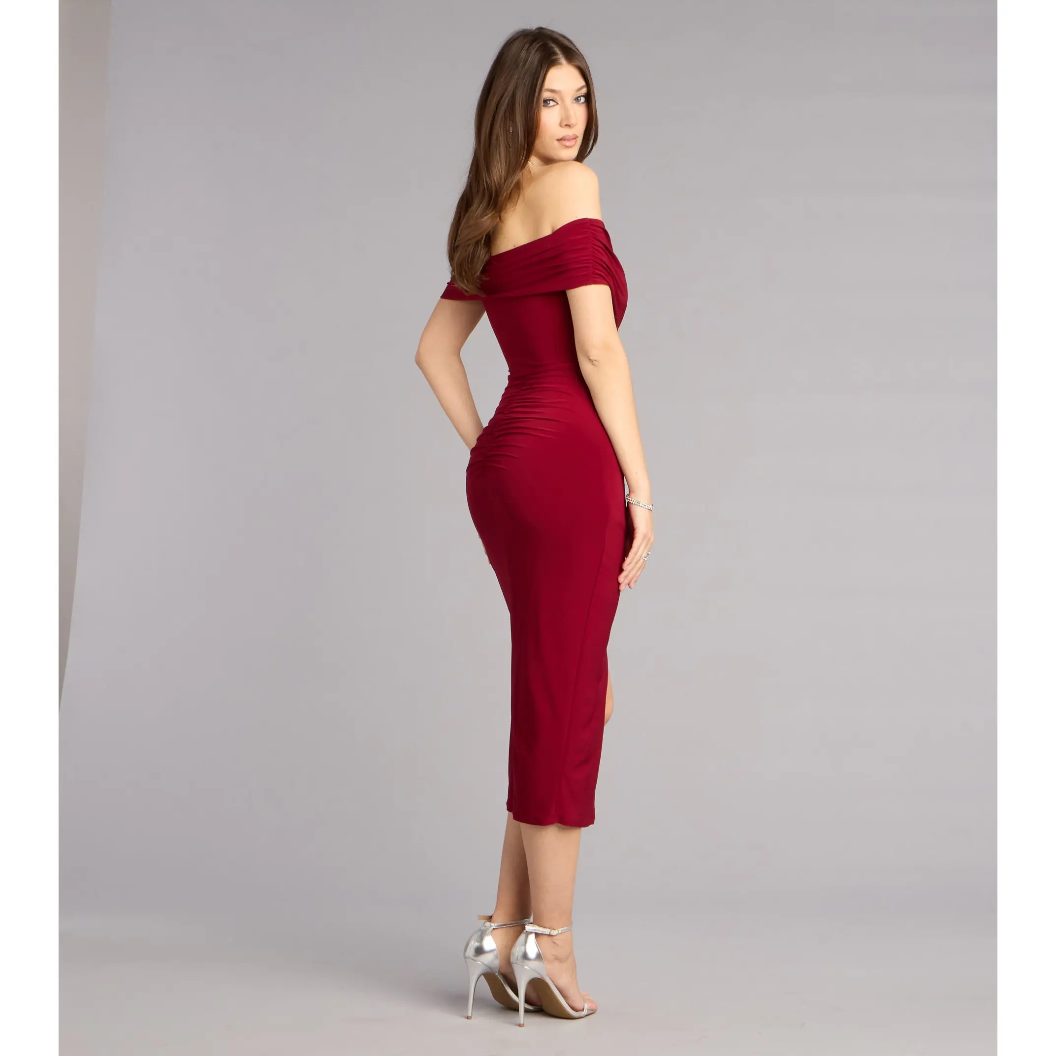 ·Form-hugging midi silhouette
