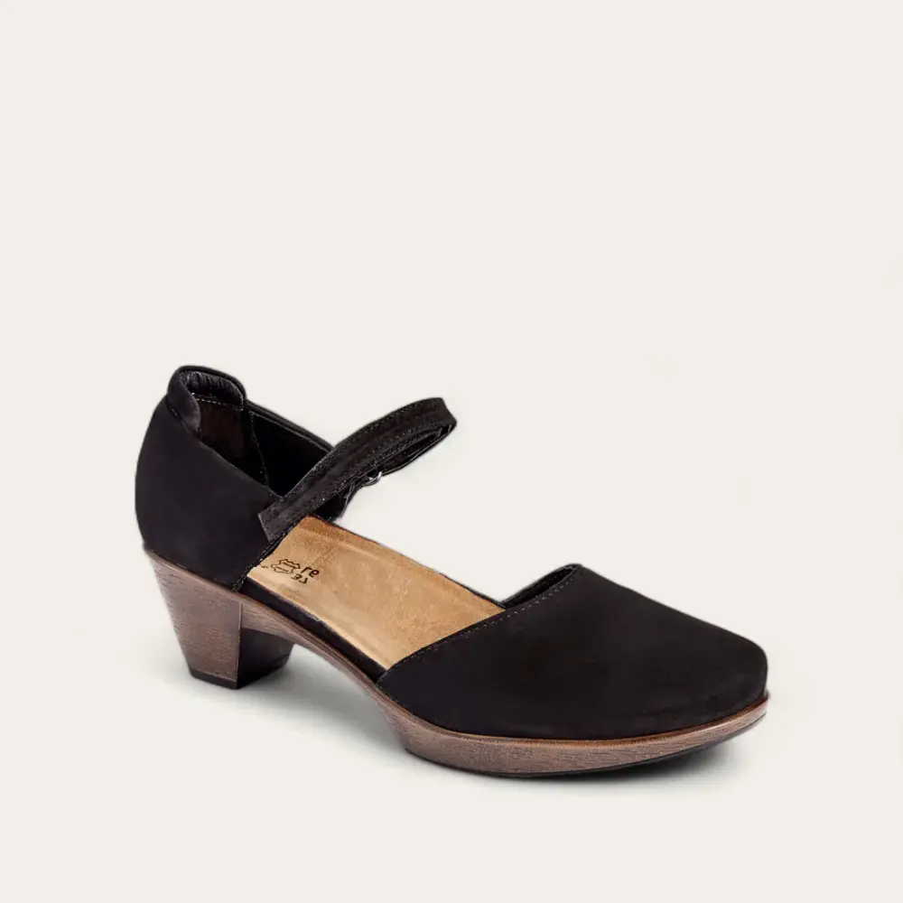 The Karma is the perfect update to a classic maryjane heel with a hook and loop closure. The Karma also offers unique foot support with Naot's anatomic cork and latex footbed, which is wrapped in pampering suede and molds to the shape of the foot with wear.