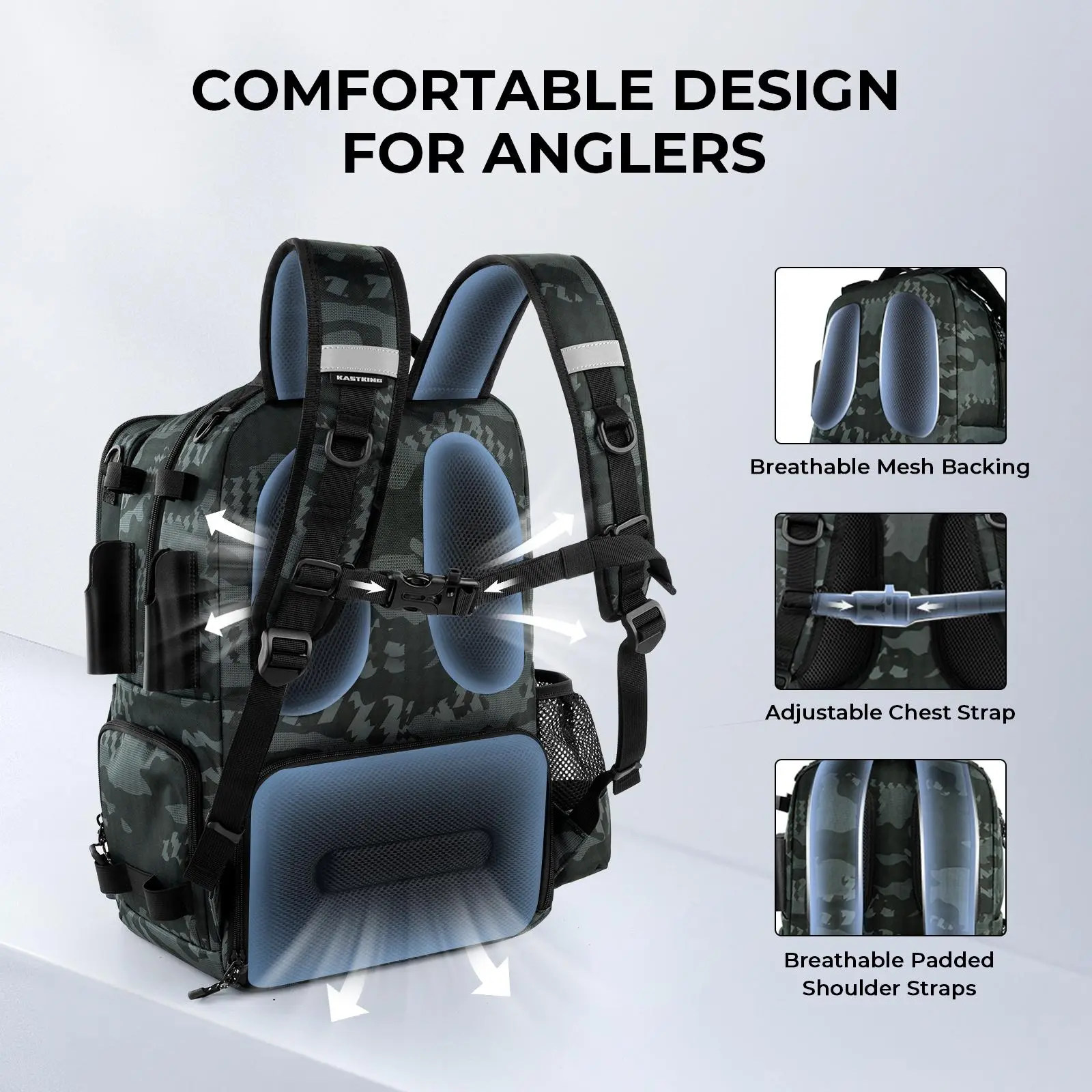 KastKing BaitSpace 50L Fishing Tackle Backpack with Removable Bait Binder & 4 Tackle Boxes Rod Holders Storage Gear Camo Design #fishinggear #shopwithkissy #fish