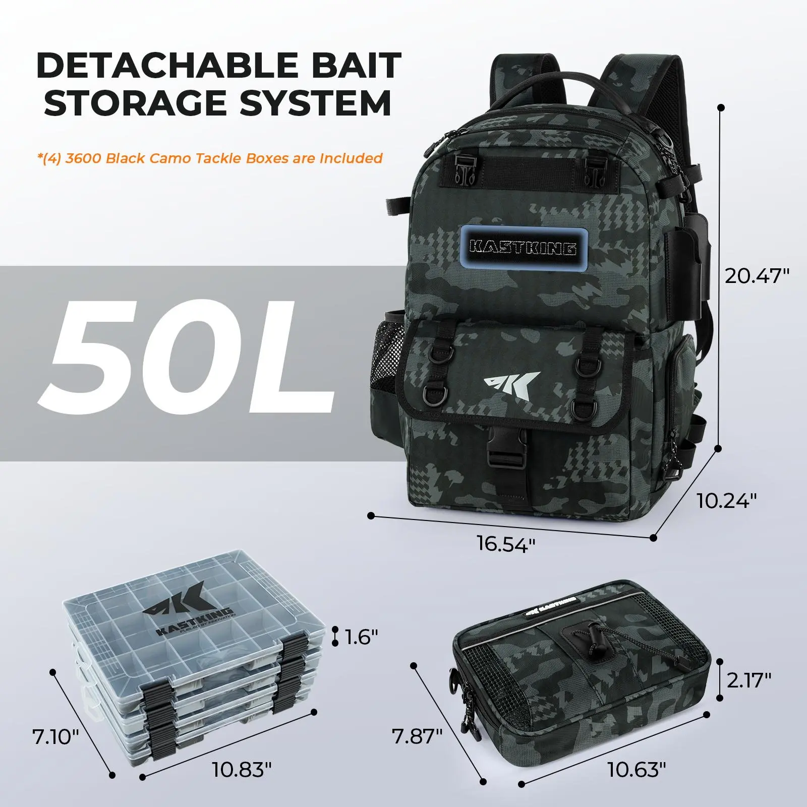 KastKing BaitSpace 50L Fishing Tackle Backpack with Removable Bait Binder & 4 Tackle Boxes Rod Holders Storage Gear Camo Design #fyp #fishing #shopwithkissy #getyours