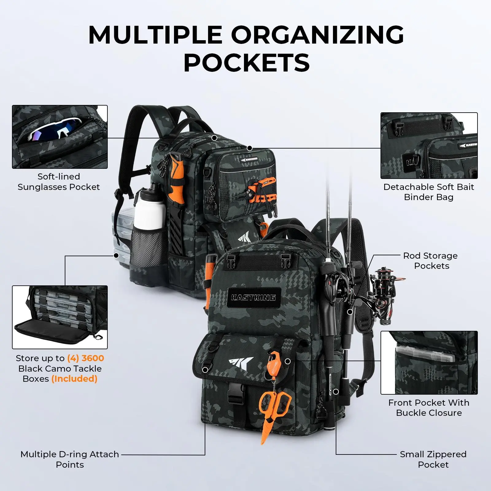 @KastKing Gear tackle Backpack with Removable Bait Binder & 4 Tackle Boxes Rod Holders Storage Gear Camo Design #fyp#shopwithkissy #fish #getit
