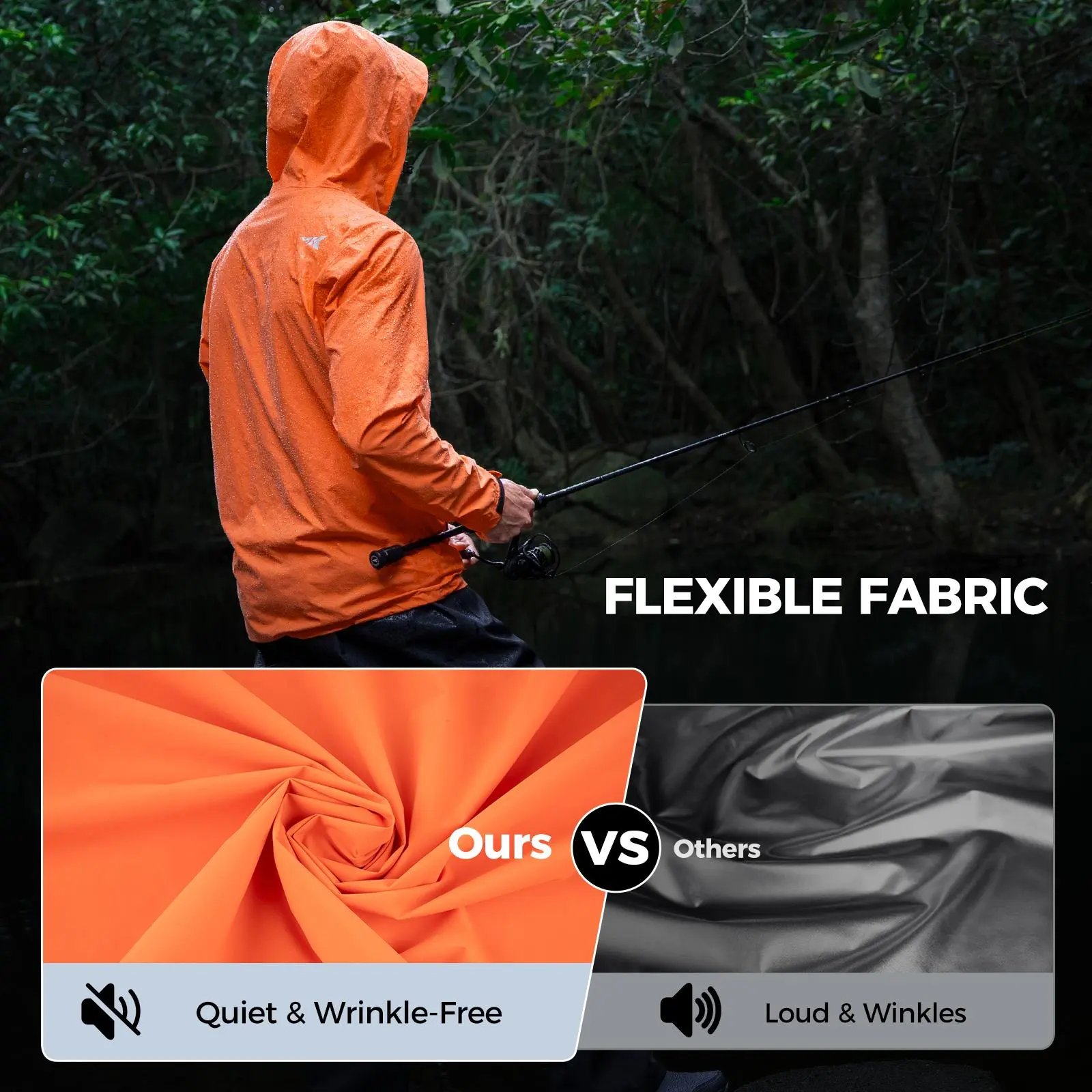 ·Flexible & Quiet Fabric – Made from a soft, stretchy and wrinkle-free material, the KastKing HydroArmor Lightweight Rain Coat offers exceptional freedom of movement for casting, reeling, and handling gear. Unlike stiff rain gear, this flexible fabric moves with you, making outdoor activities effortless. The quiet, low-noise construction ensures stealth fishing.