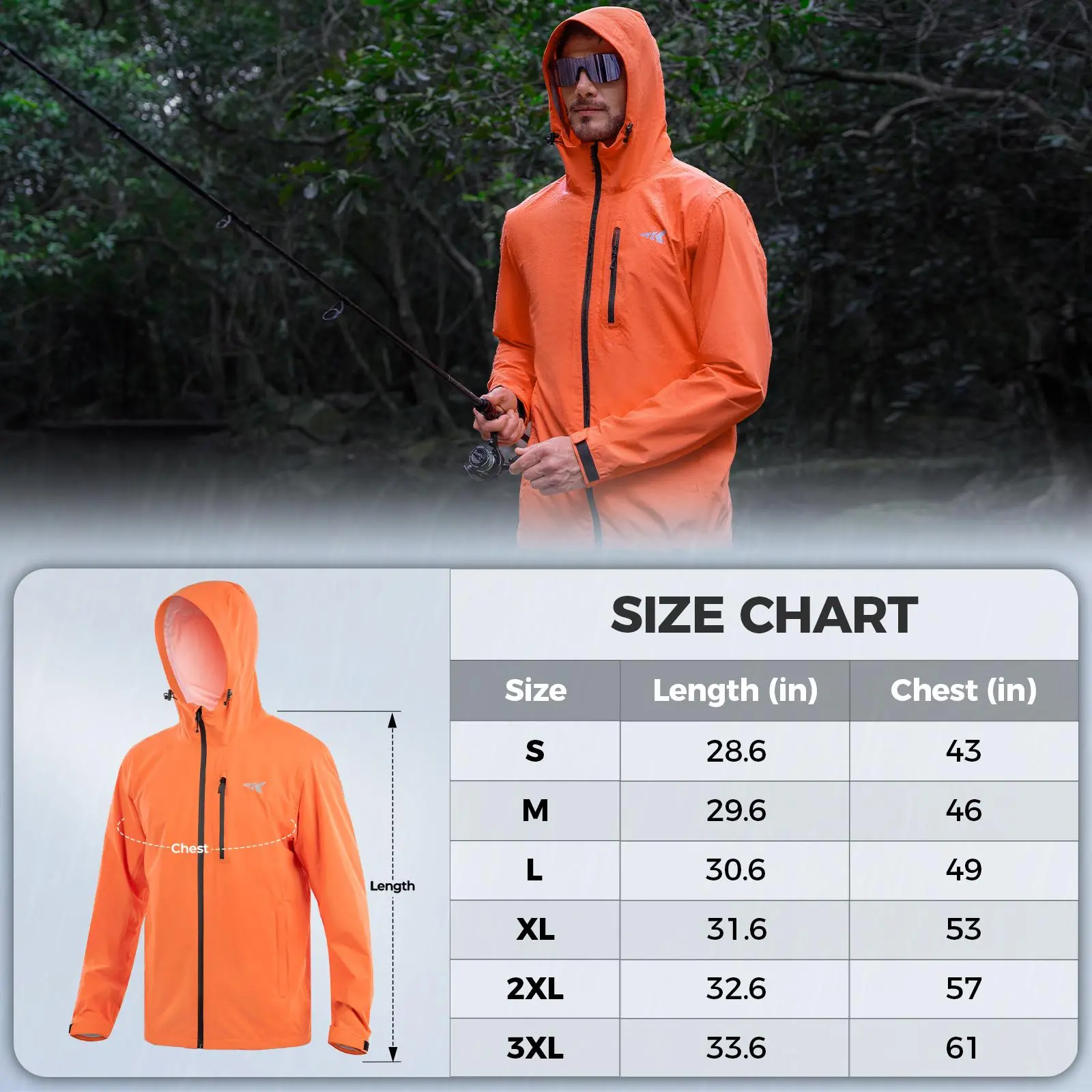 ·Lightweight & Packable Design – Weighing just 10.8oz (Size L) and 9.7oz (Size M), this ultralight rainwear is designed for easy portability. It conveniently packs into its own pocket, making it compact for storage in backpacks, tackle bags, or travel gear. Whether fishing, hiking, or traveling, you’ll have a small, lightweight rain jacket that won’t take up space but provides reliable protection when needed.