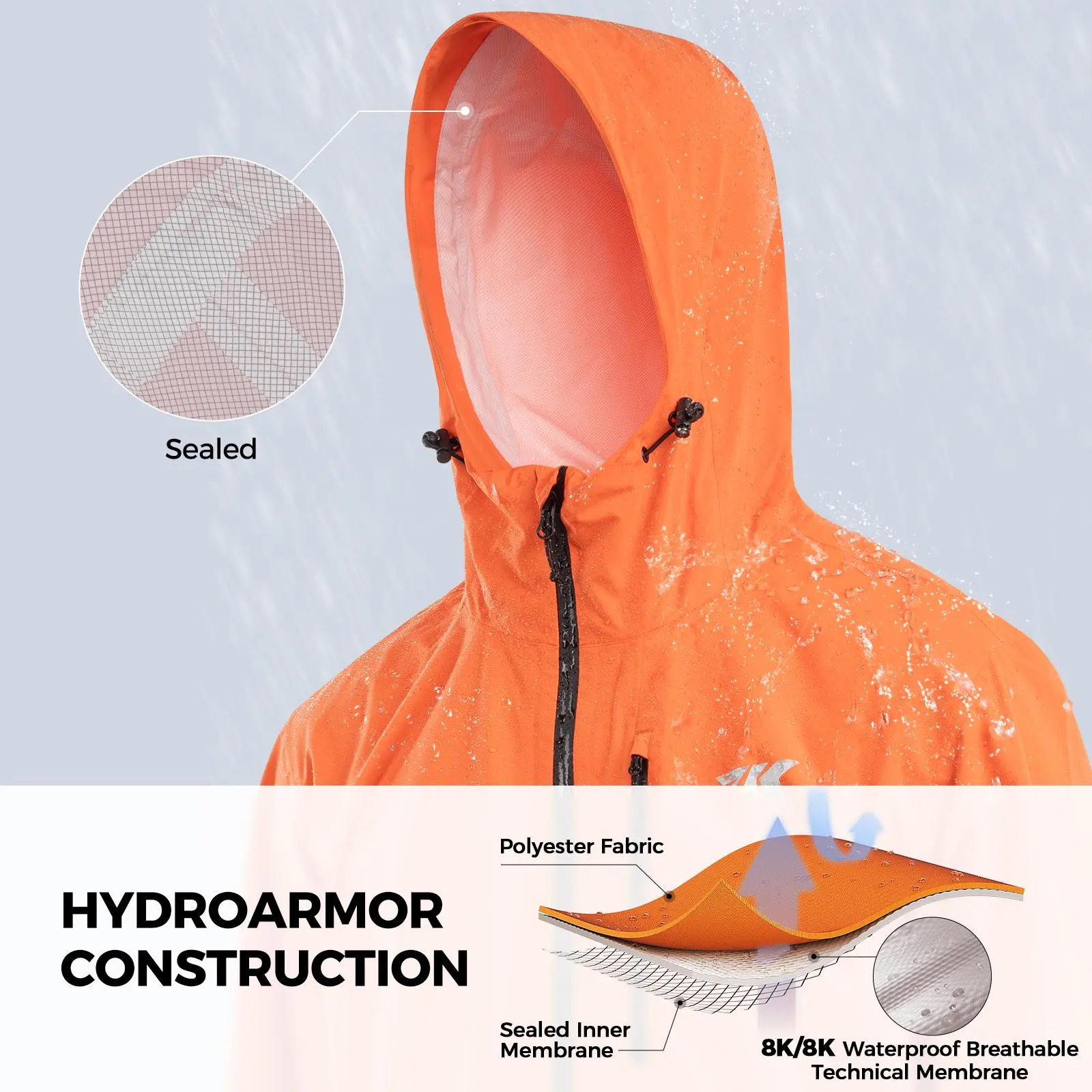 ·2.5-Layer Waterproof Protection – The KastKing HydroArmor Lightweight Rain Coat is built with a durable polyester outer layer, an 8K/8K waterproof and breathable technical membrane, and a sealed inner layer for total weather protection. The sealed seams block out moisture, ensuring 100% waterproof coverage. The breathable membrane allows heat and sweat to escape while keeping rain out, keeping you dry and comfortable during outdoor activities.