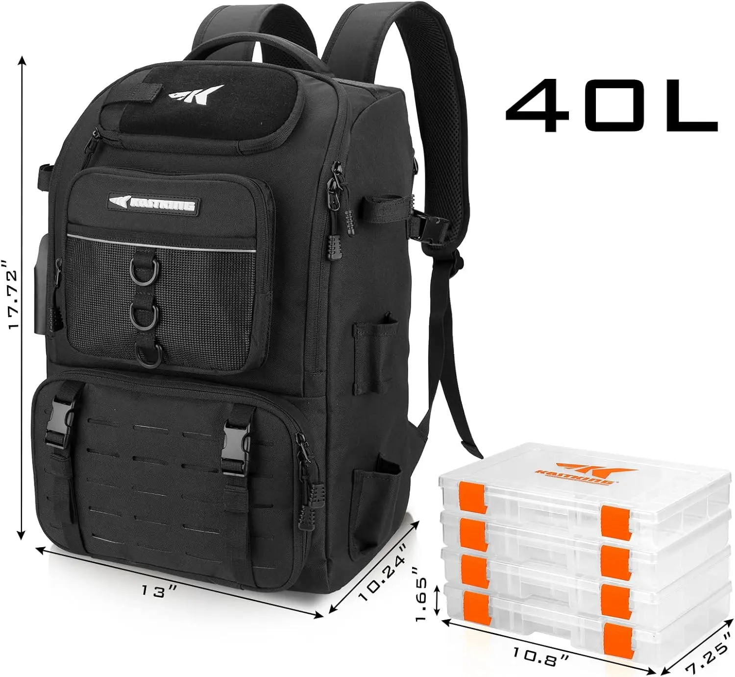 ·Adjustable 40L Main Compartment: Customizable storage with a foldable padded divider—split into dual zones for tackle boxes (fits four 3600 KastKing boxes) and personal items like clothes or snacks.
