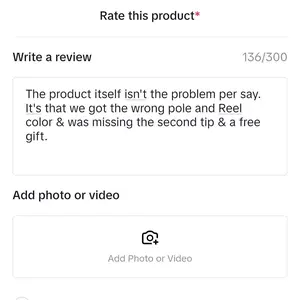 The product itself isn't the problem per say. It's that we got the wrong pole and Reel color & was missing the second tip & a free gift.