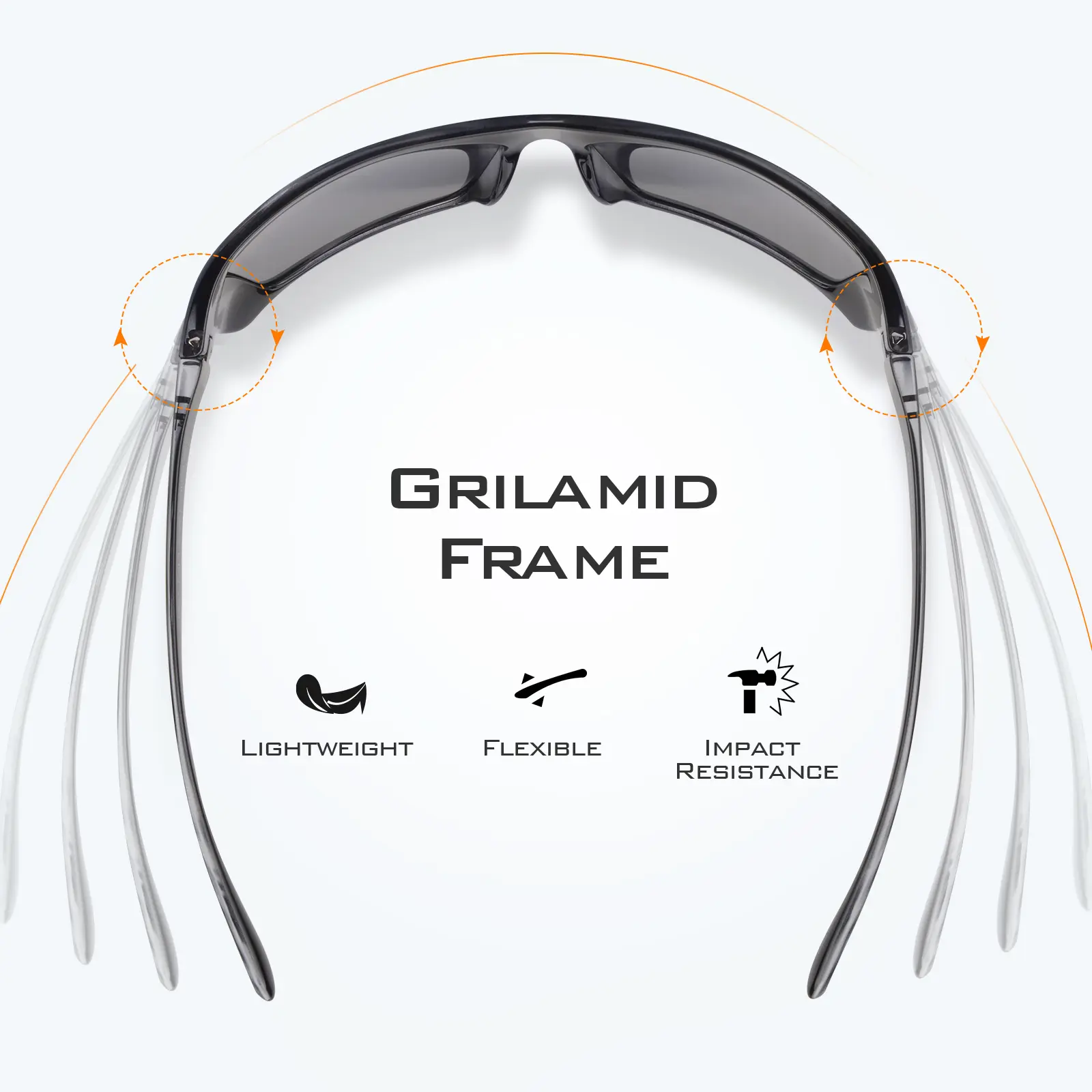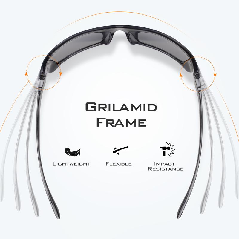 ·Grilamid Frames: Constructed from the same Grilamid material commonly used by the military and in medical applications, these frames are lightweight, extremely flexible, and heat and UV resistant.