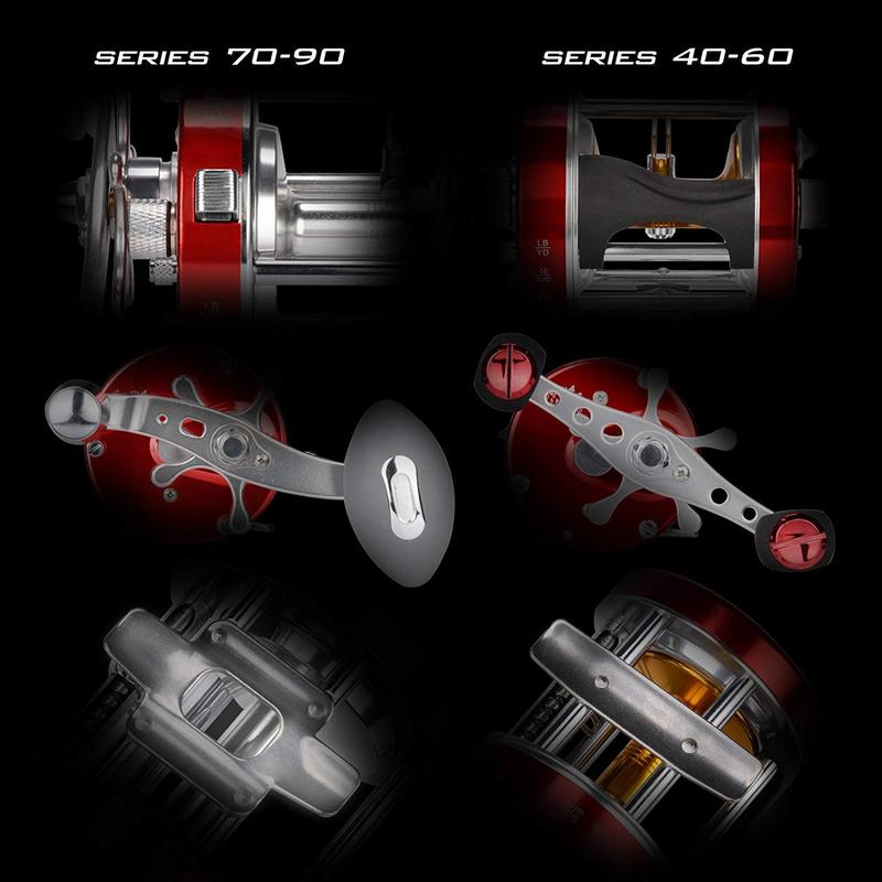 Attractive anodized red side plates and spool made from high-grade aluminum, precision machined brass worm shaft, and stainless steel components give superior corrosion protection, even in saltwater.