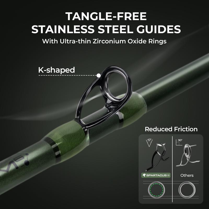 ·Smooth & Comfortable Casting – Equipped with stainless steel guides with ultra-thin zirconium rings, the KastKing Spartacus II Twin-Tip Spinning and Casting Combo minimizes friction for smooth, long casts and consistent performance. Custom reel seats, rubber cork handles, and patented built-in hook keeper ensure a secure and convenient grip, enabling anglers to fish for extended periods without fatigue or interruption.