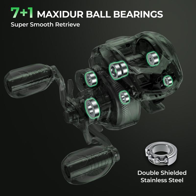·High-Performance Spinning Reel – The KastKing Spartacus II spinning reel is equipped with a 7+1 MaxiDur bearing system for ultra-smooth casting and retrieval. With 22 pounds max drag power, it provides the strength needed to tackle tough catches. The 5.2:1 gear ratio ensures fast line retrieve. Built with zinc alloy main gears, stainless steel main shafts, and precision brass pinion gears, this reel offers long-lasting durability and reliable performance, even in demanding fishing conditions.