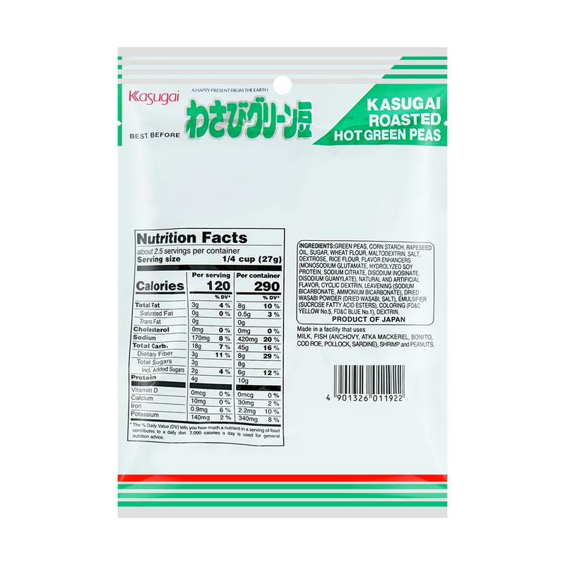 🌟 Discover the irresistible crunch of KASUGAI Wasabi Peas! These crispy roasted green peas are the perfect snack for any occasion, whether you're enjoying a movie night or looking for a tasty treat to pair with your favorite drink.