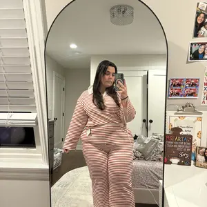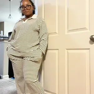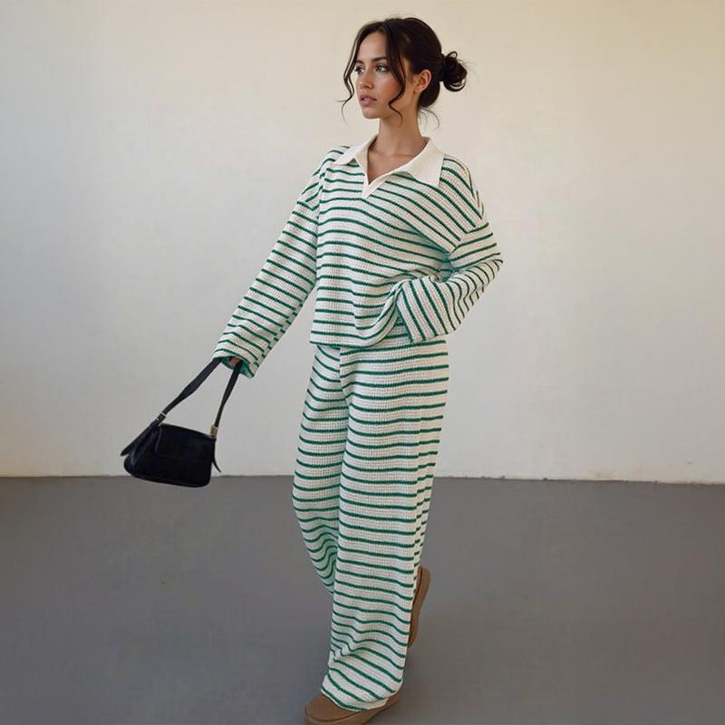 KatchMe Women's Casual Color Matching Stripe Long Sleeve Top & Wide Leg Trousers Co-ord
