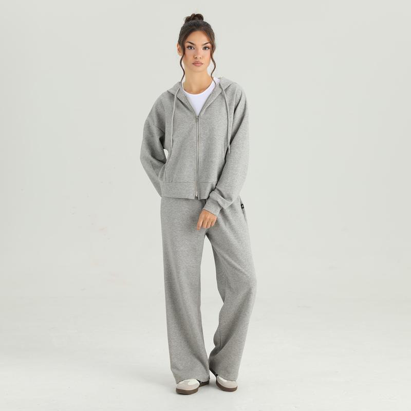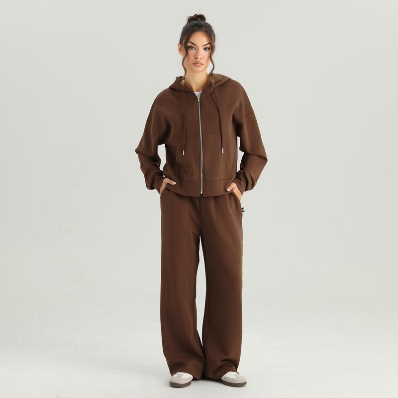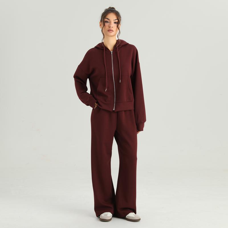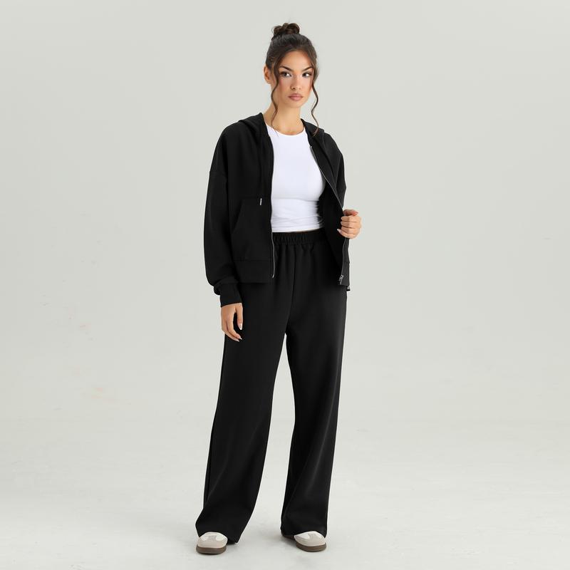 KatchMe Women's Casual Solid Color Hooded Zipper Hoodie & Wide Leg Trousers Co-ord, Fall & Winter Minimalist Two Piece Outfits, Going Out Set