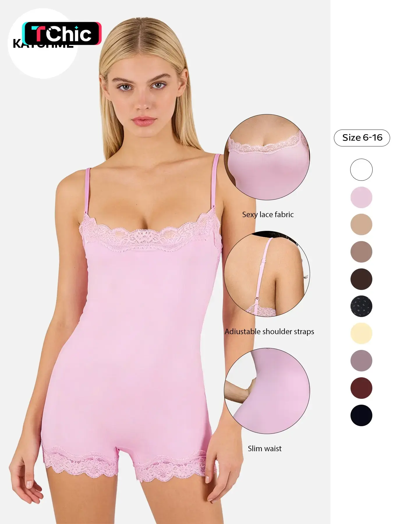 ·Details: Solid color, Sleeveless, Spaghetti straps, Lace trim design, Seamless, Soft and stretch fabric