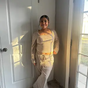 The quality of this fit is so nice! I love this outfit.. pjs whatever you want to wear them for. It’s comfortable. I’m 5’3 147lbs, medium is perfect for me!