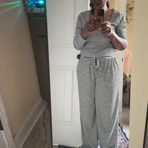 KatchMe Women's Slouchy Square Neck Stripe Long Sleeve Crop Top & Low-Rise Wide Leg Trousers Co-ord