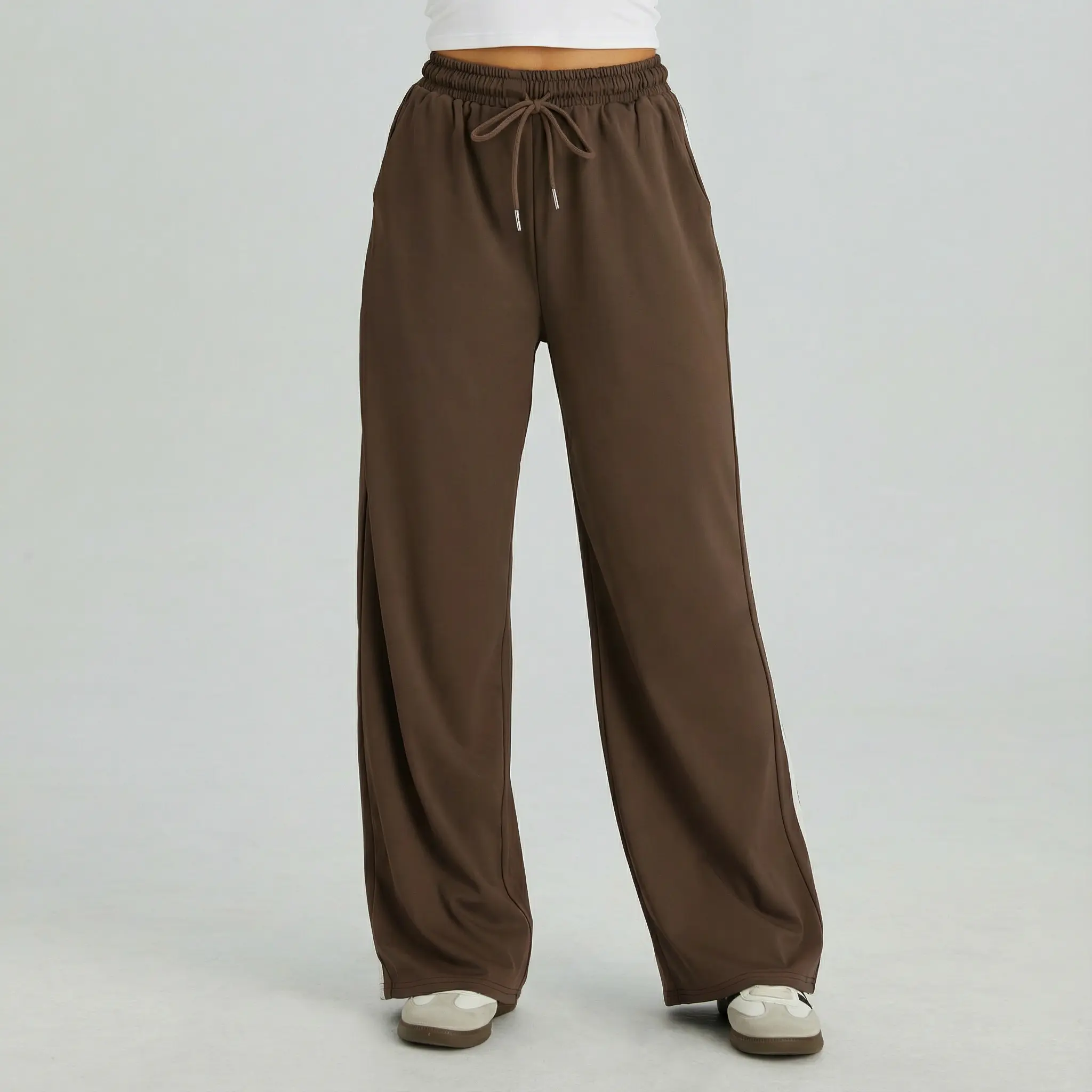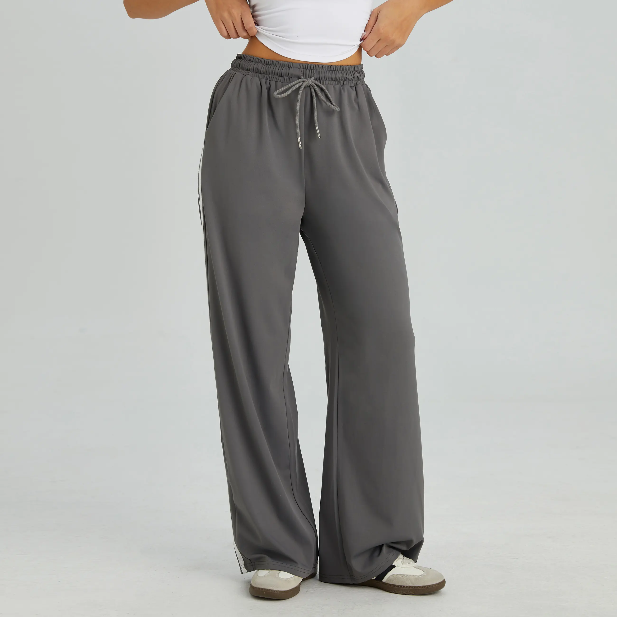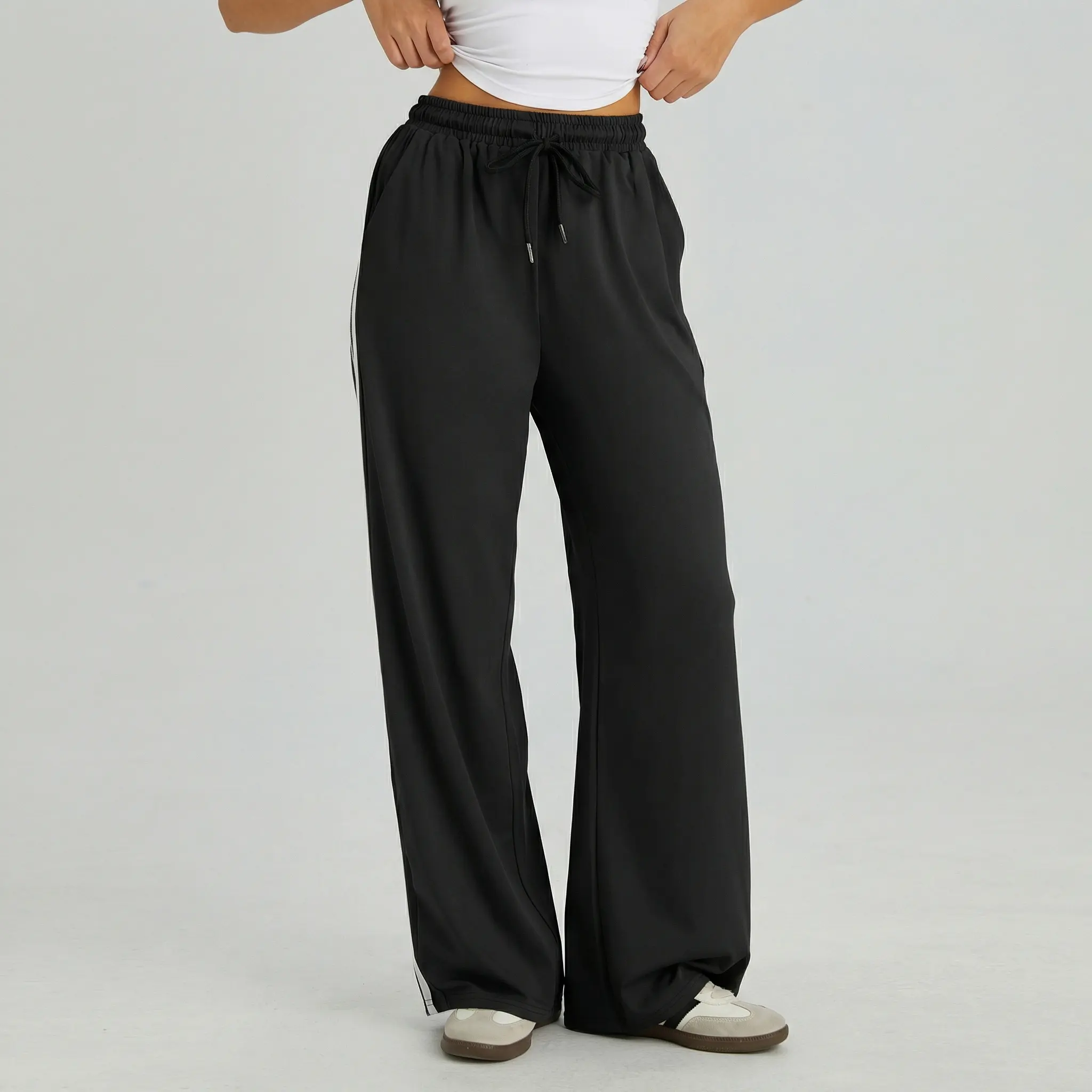 KatchMe Women's Casual High Waist Striped Wide Leg Trousers, Sporty Drawstring Waist Side Pocket Outfit, Versatile Women's Bottom