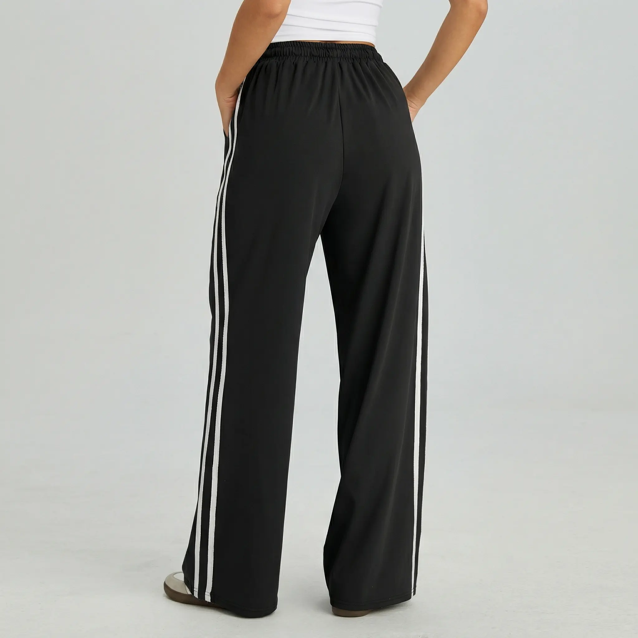 An adjustable drawstring waist for a customizable fit, offering both comfort and a touch of sporty refinement.