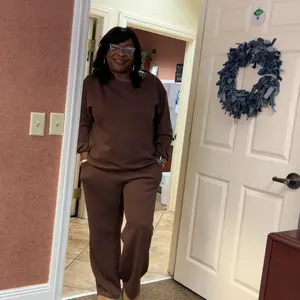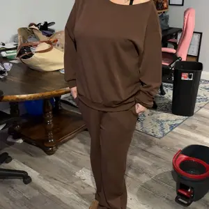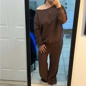 KatchMe Women's Leisure Solid Color Sloping Shoulder Long Sleeve Top & Wide Leg Trousers Co-ord