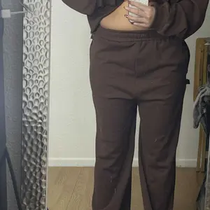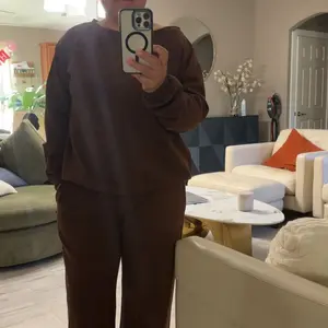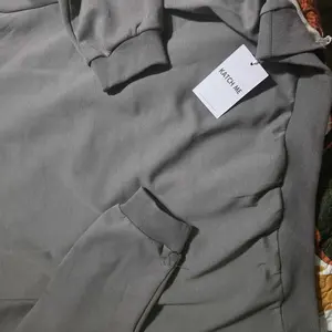 Made from soft, solid-colored fabric, this set features a stylish sloping shoulder design and long sleeves, paired with matching trousers for an elegant appearance.