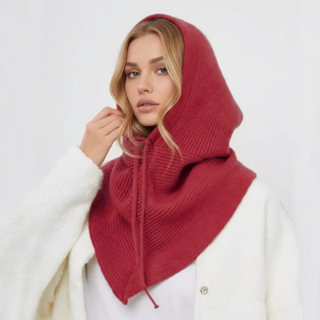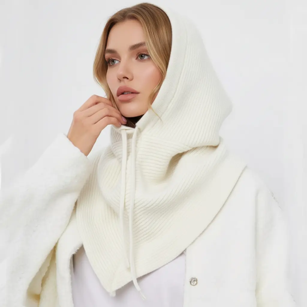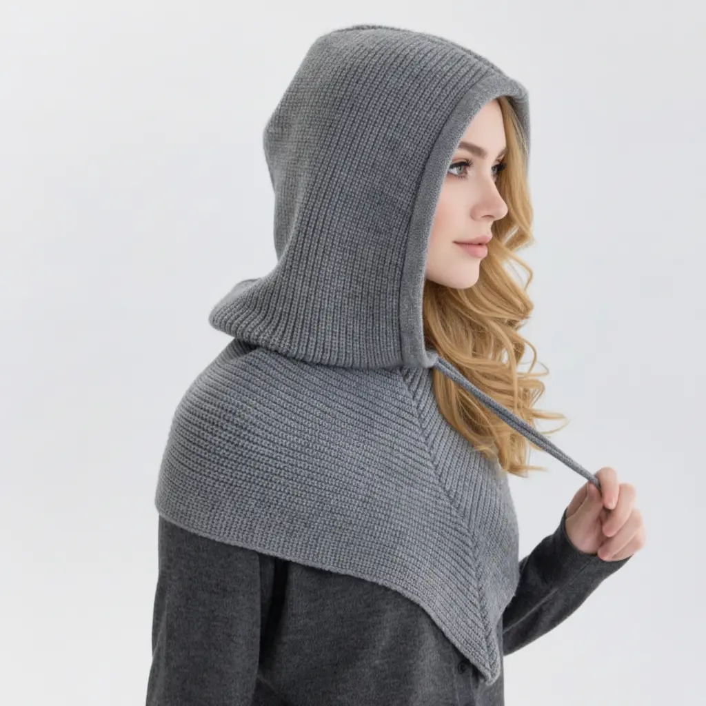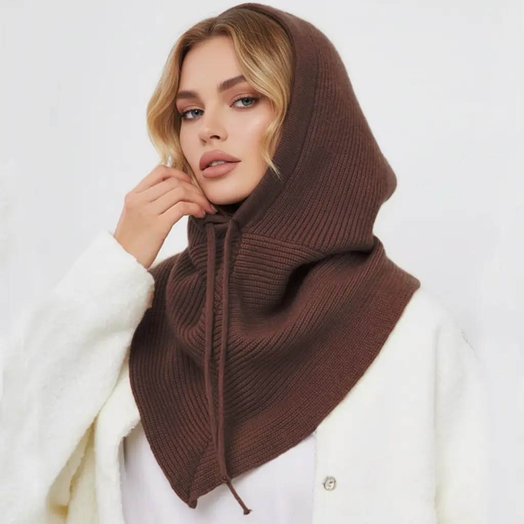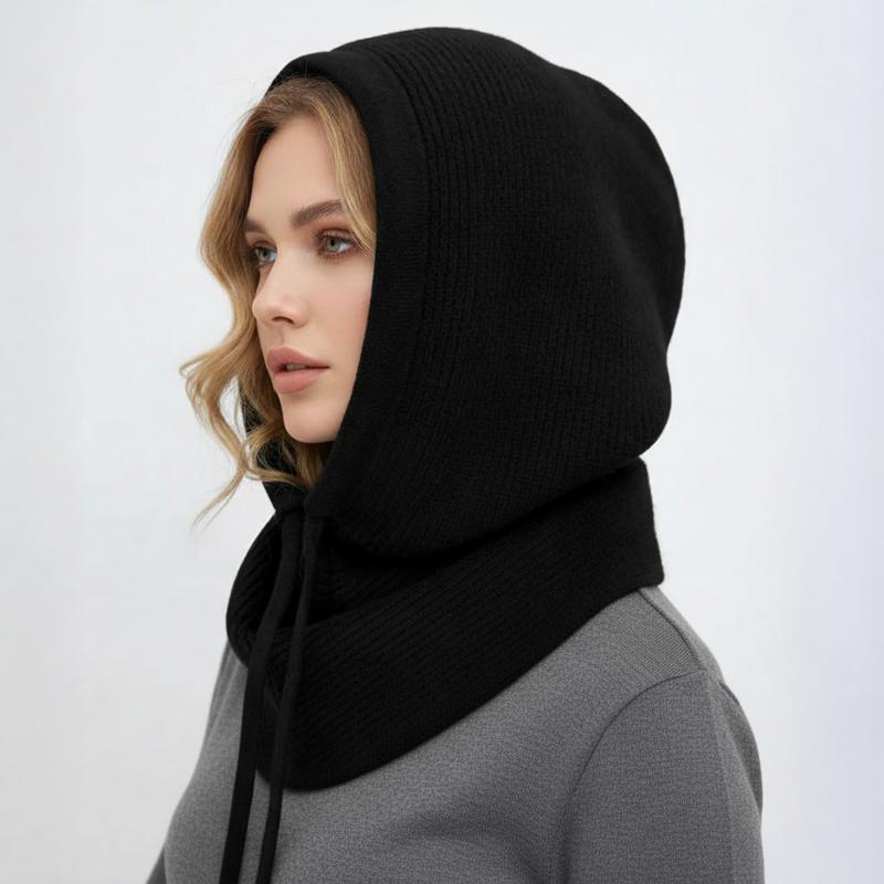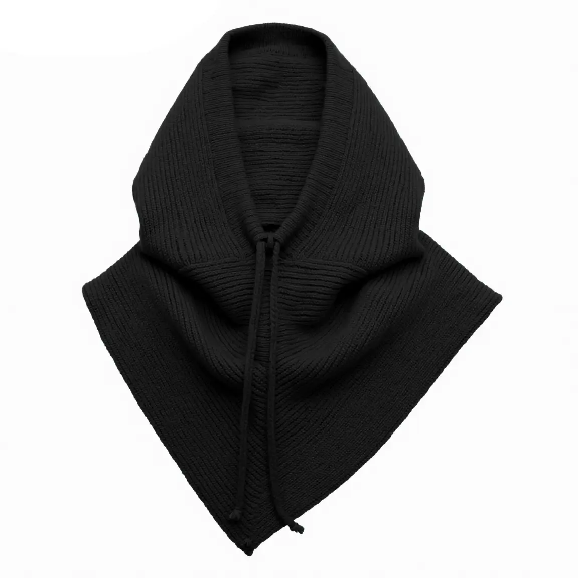 KatchMe Women's Leisure Thermal Drawstring Knitted Scarf Hat, Versatile Solid Color Two-In-One Windproof Neck Warmer for Fall & Winter