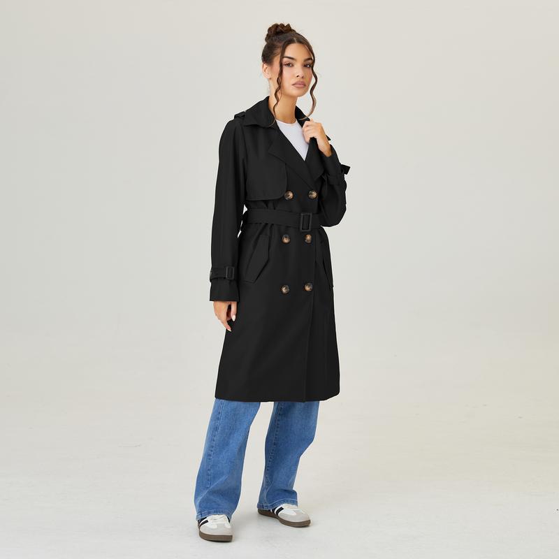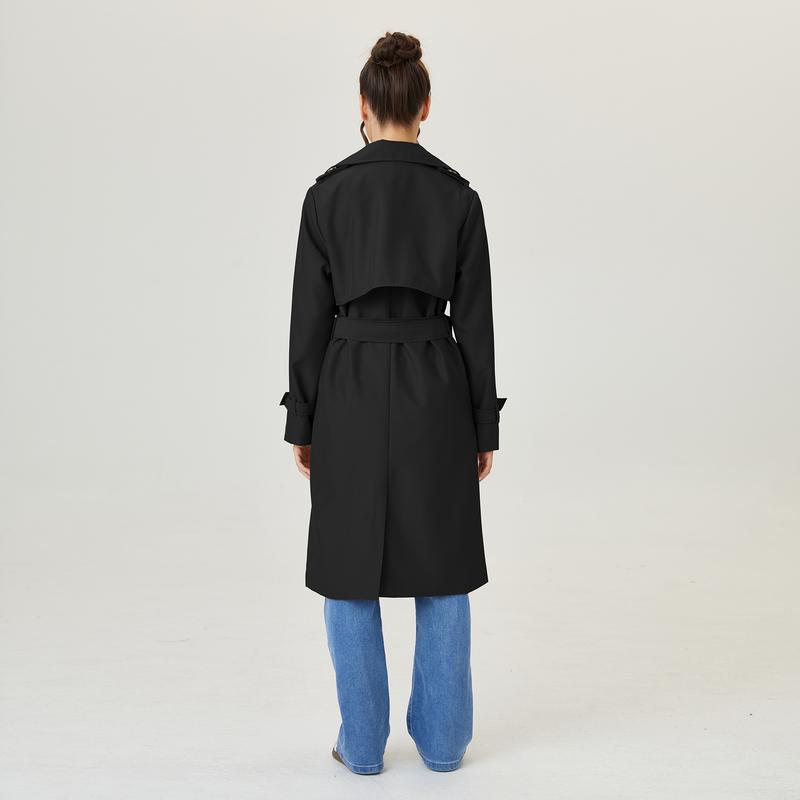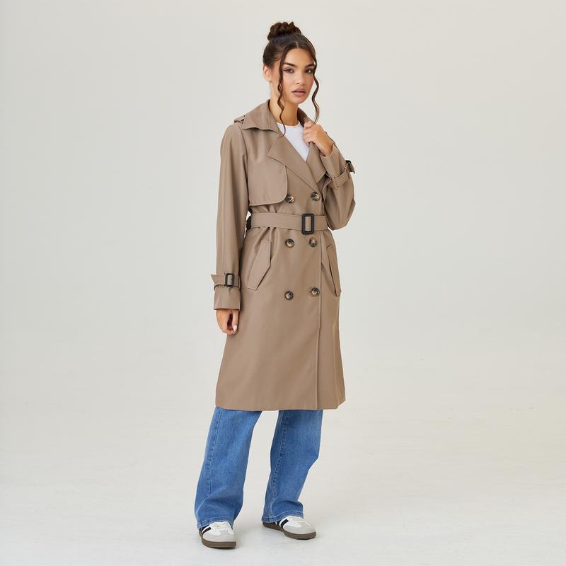 ·Details: Notch lapel, Long sleeves, Double-breasted, Removable belt with buckle, Lining