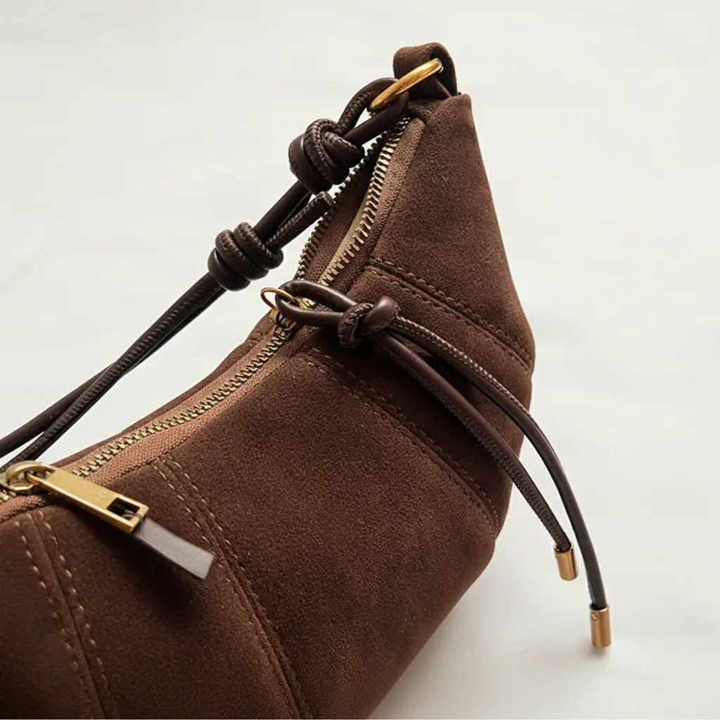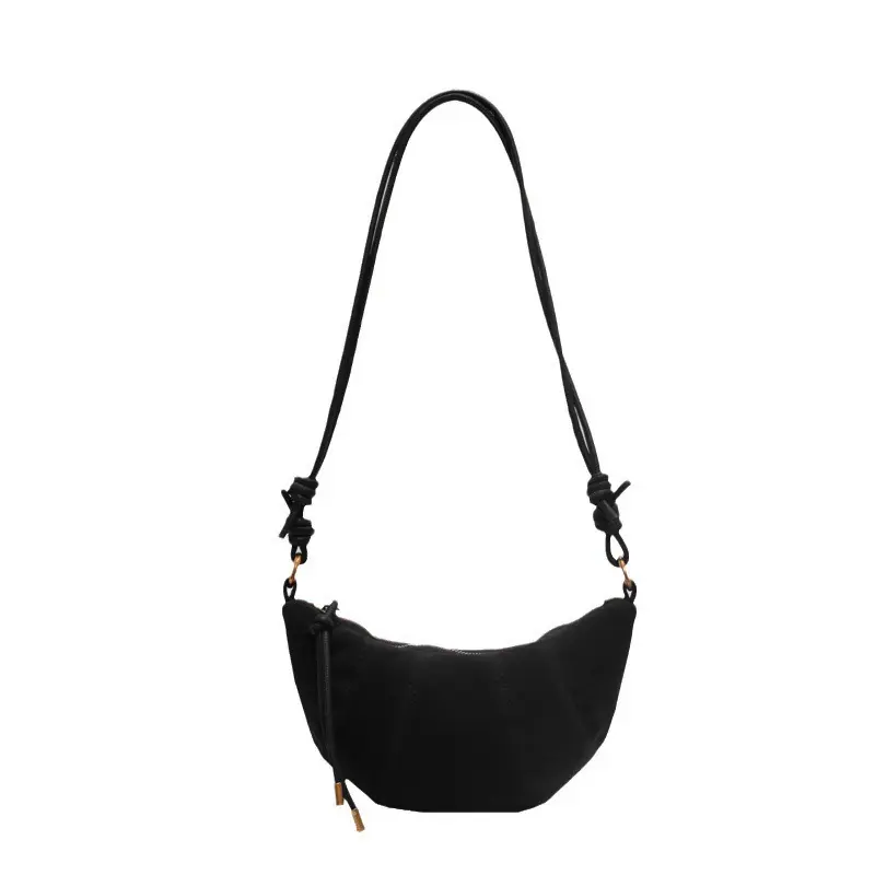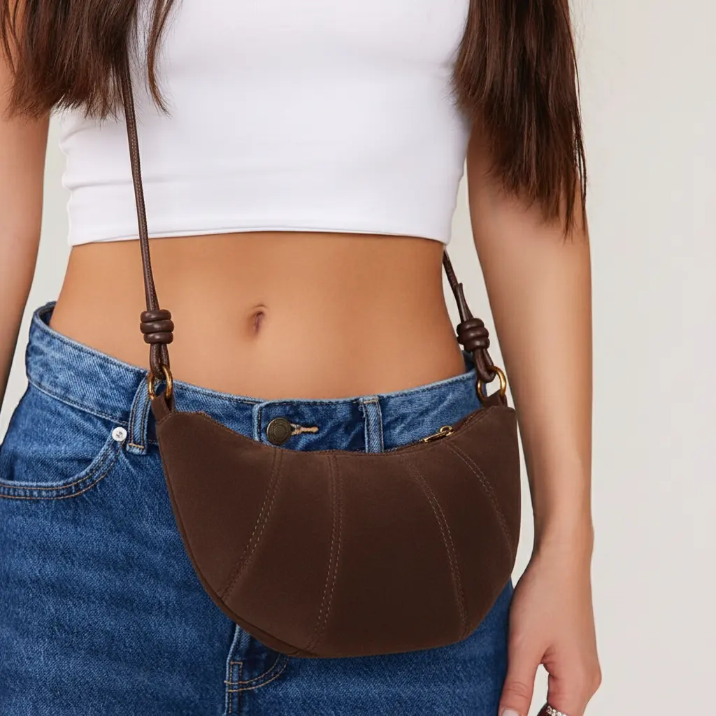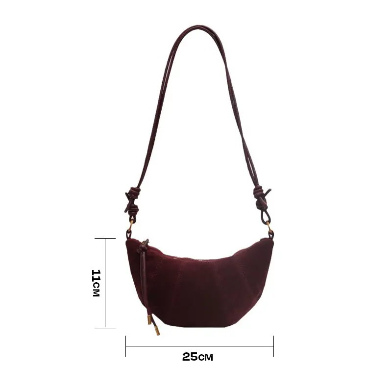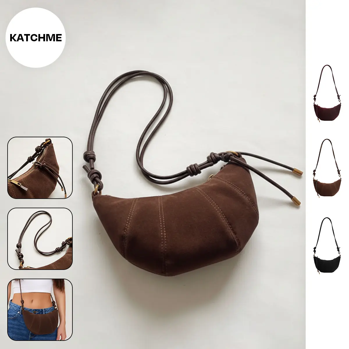KatchMe Women's Vintage Solid Color Suede Crescent Shoulder Bag, Classy Zipper PU Crossbody Bag with Inner Pocket