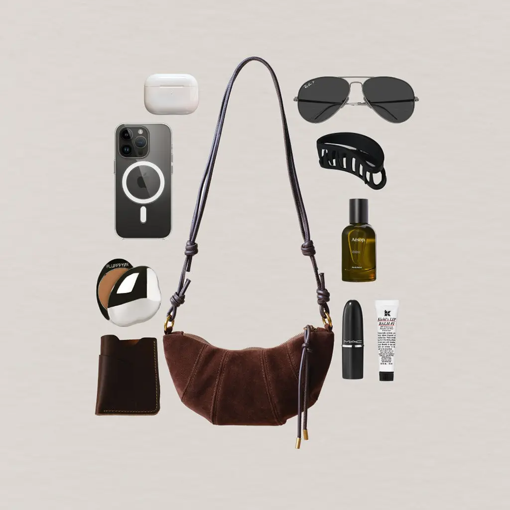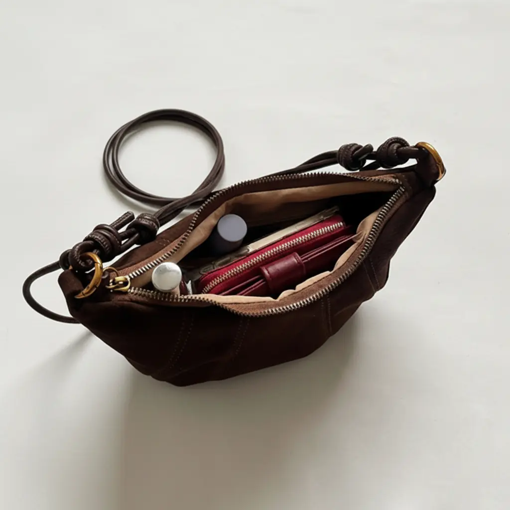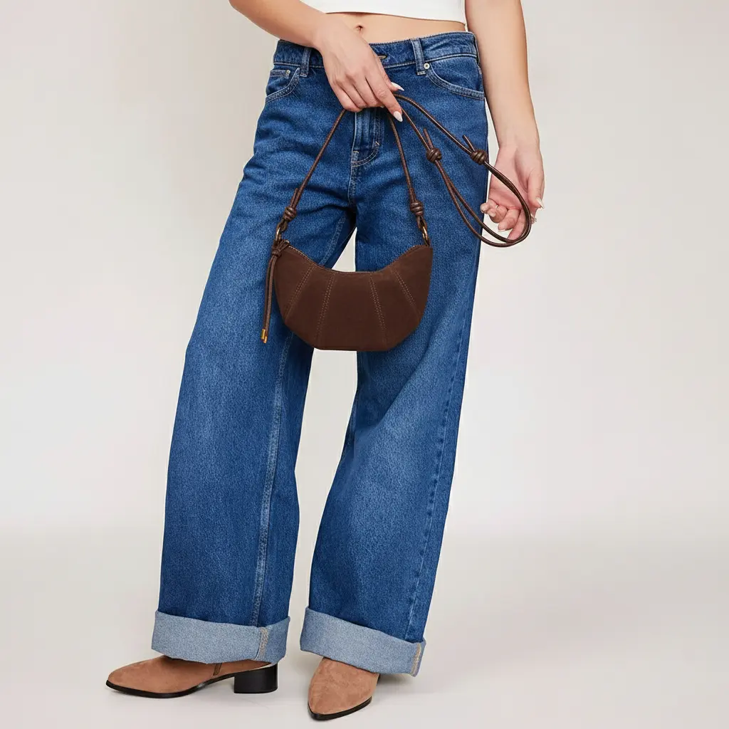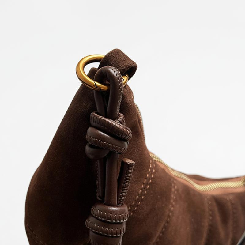 KatchMe Women's Vintage Solid Color Suede Crescent Shoulder Bag, Classy Zipper PU Crossbody Bag with Inner Pocket
