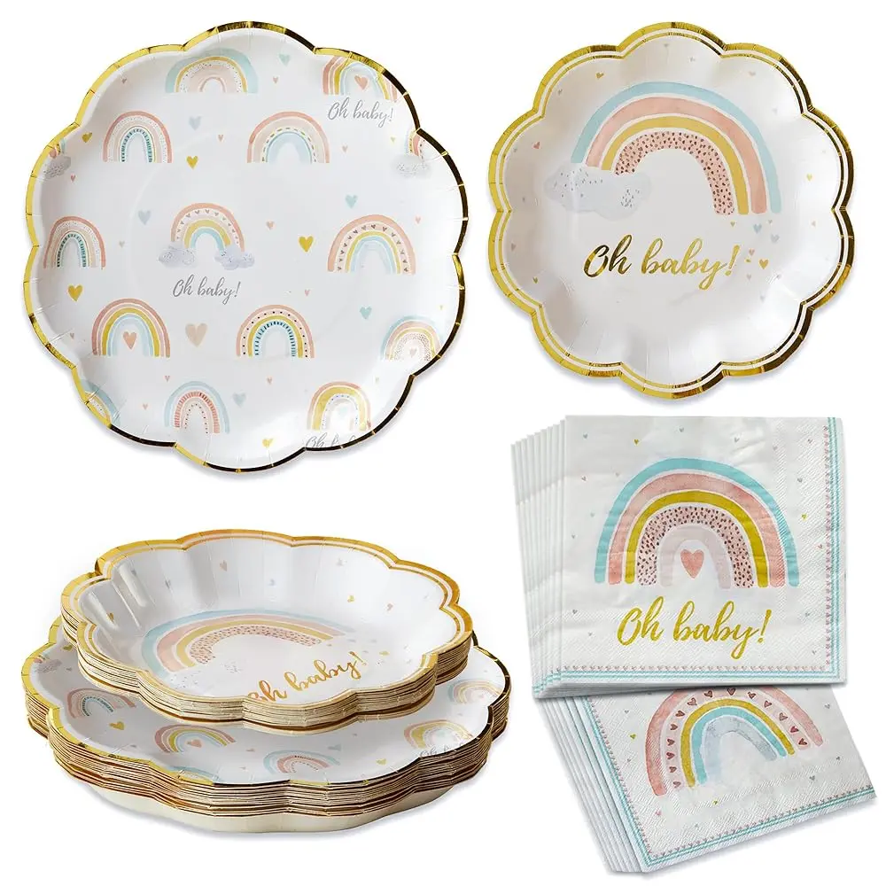 Beautiful & Functional - Decorative disposable 9 inch & 7 inch paper plates as well as matching paper napkins with a adorable woodland creatures. Floral print is accented by gold foil details, gold foil scalloped edge and soothing colors. Sold in a convenient set that will bring color and style to your table and special event.