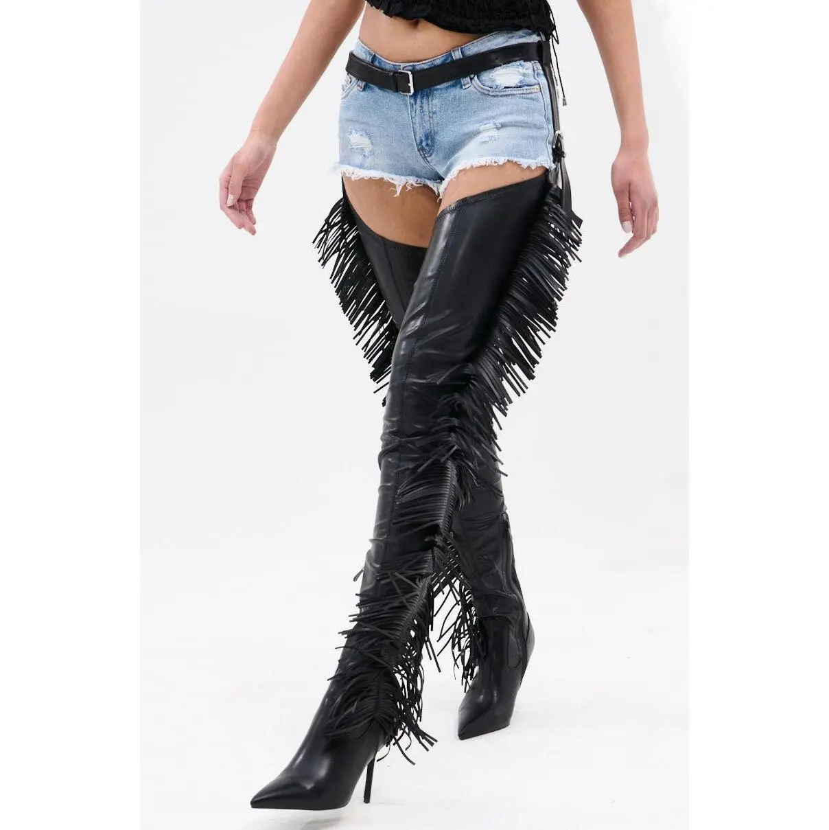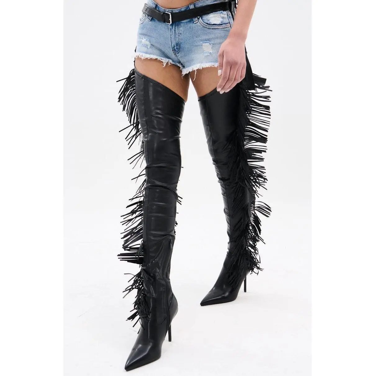 K these boots are kinda high but don’t let that scare you they are very very comfortable, they have stretch to them so us big ankle and thick thighs can wear them well. I absolutely love them!! Also when you first get them hang them up so the fringe can do its magic