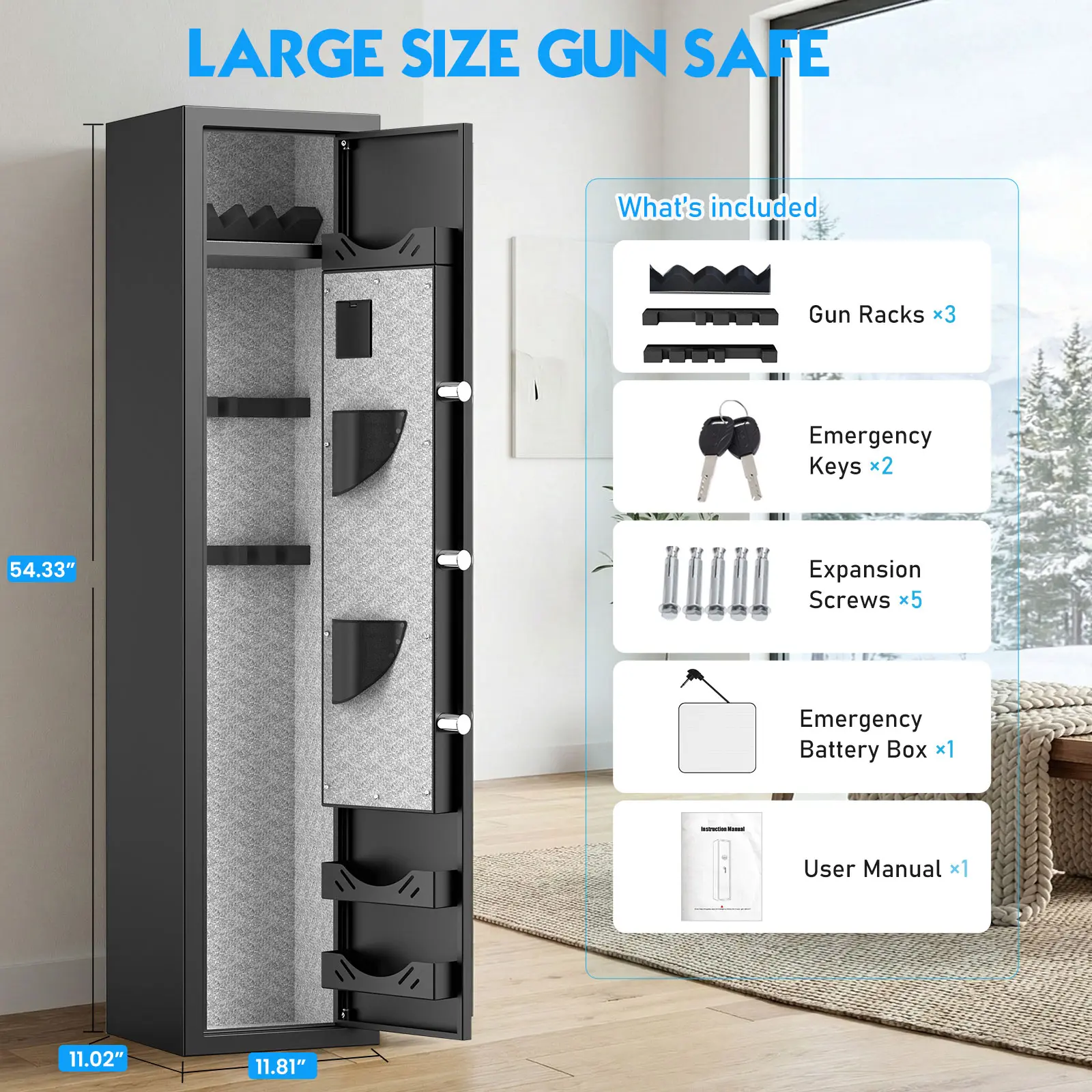 【Complete Accessories and Customer Service】1 x Safe, 2 x Spare Keys, 5 x Expansion Screws, 1 x Emergency Battery Box, 1 x Instruction Manual. If you have any questions, please tell us, we provide after-sales support for your convenience and practical assistance.
