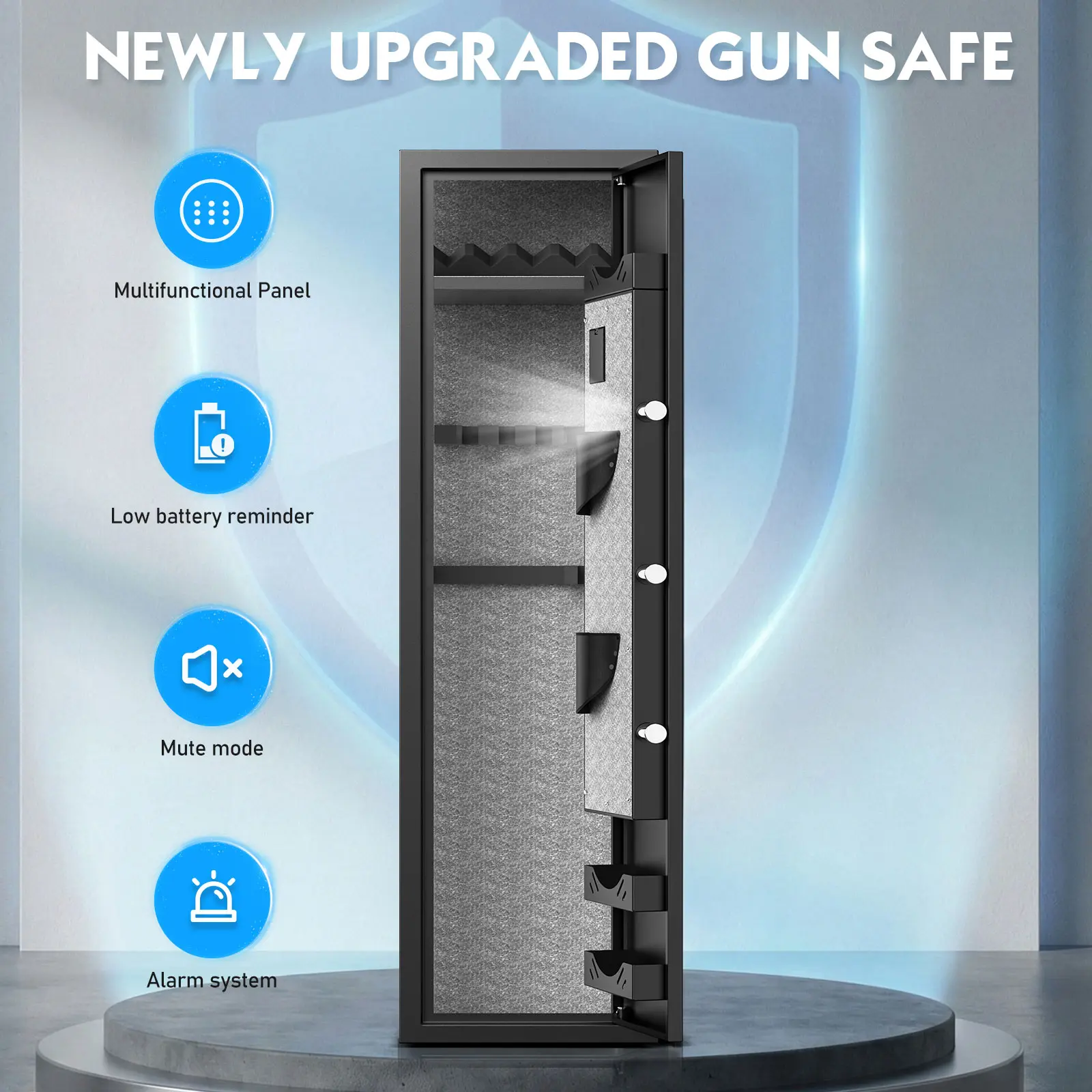 【Quick Access Biometric Digital Safes】Quick access to safety cabinet takes just 0.1 seconds with biometric lock. The safe stores up to 20 fingerprints. And you can also access the safe with a password or key. In addition, the upgraded password memory function make sure the passwords will remain when the battery runs out.