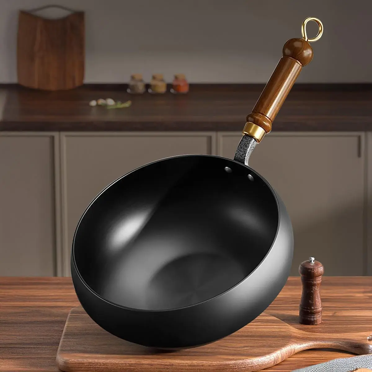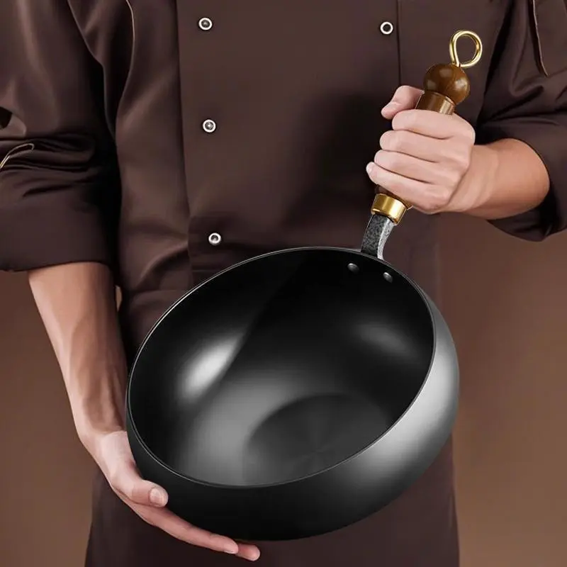 🍳 The generous 'big belly' shape allows for easy tossing and flipping of ingredients, making it ideal for authentic Asian cuisine, from vibrant stir-fries to delicate sautés. The included wooden lid helps to lock in moisture and flavors, or can be used as a serving piece.