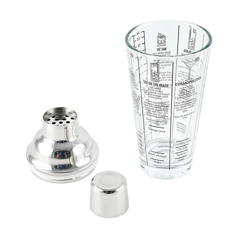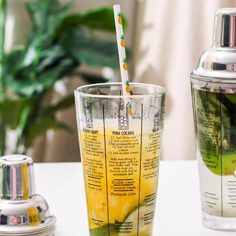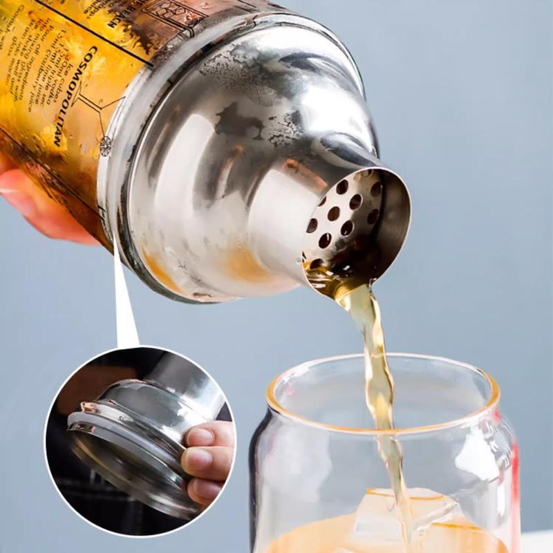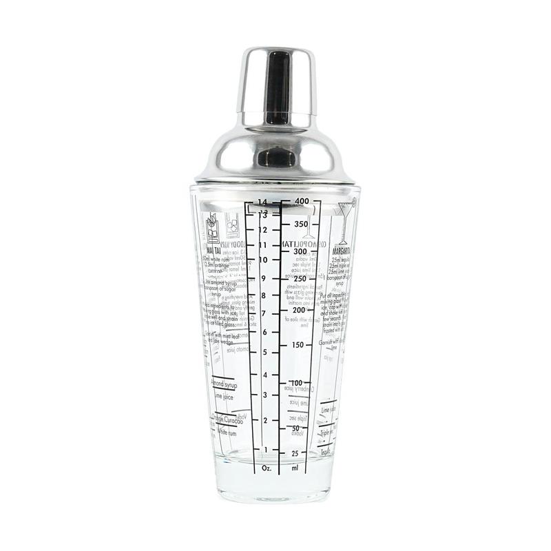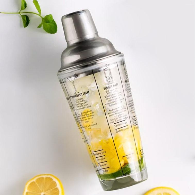 ·A glass shaker with scale for precise measurements, ensuring deliciousness without deviation.